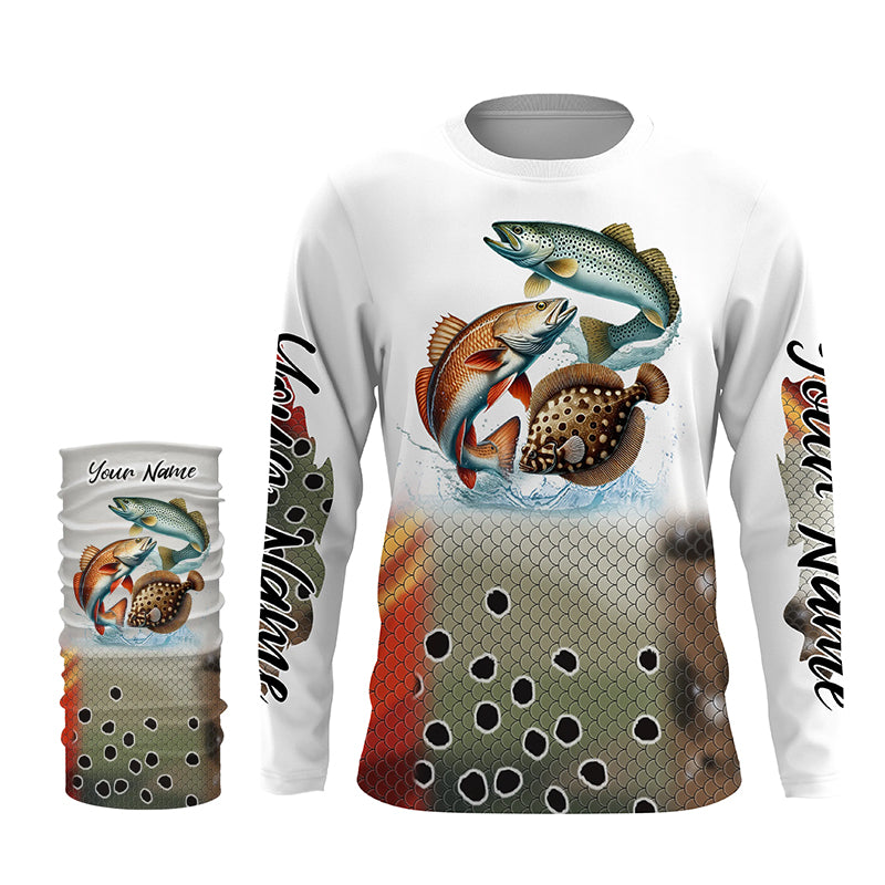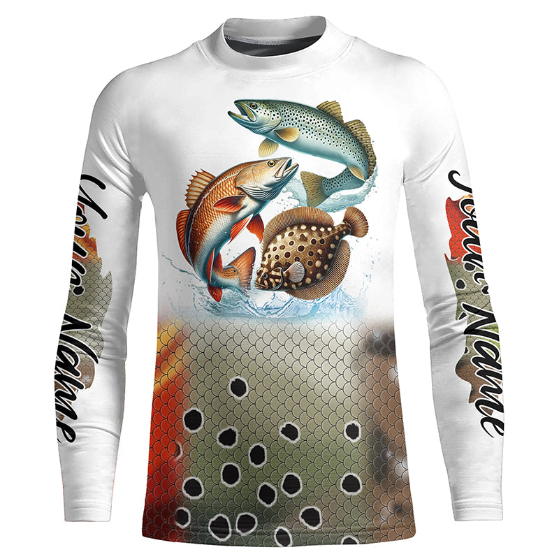 Texas inshore slam Fishing Redfish, speckled trout, flounder fishing scales Custom fishing jerseys NQS2950