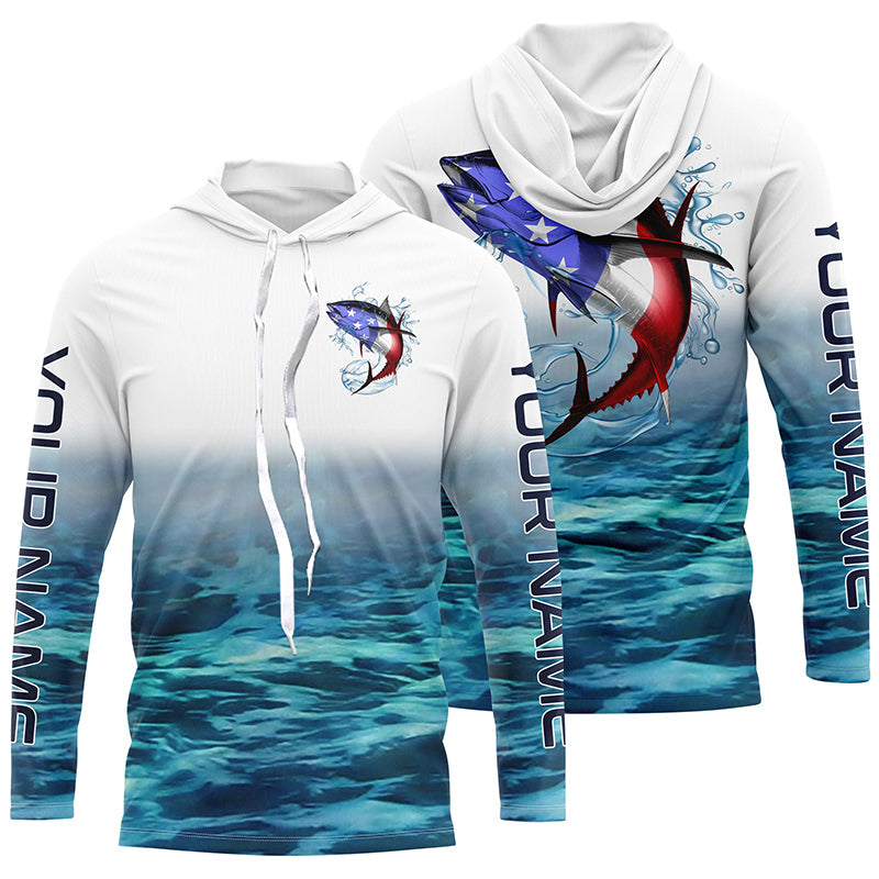 American Flag Tuna Long Sleeve Fishing Shirts, Custom Patriotic Tuna Tournament Fishing Shirts IPHW4401