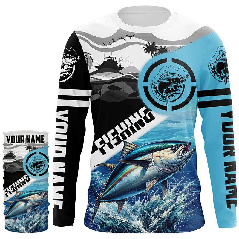 Tuna Fishing blue saltwater custom UV protection fishing apparel, Tuna tournament fishing jerseys NQS1421