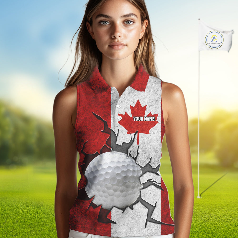 Vintage Canadian Flag broken golf ball Women Sleeveless polos Custom patriotic Ladies Golf attire NQS10050