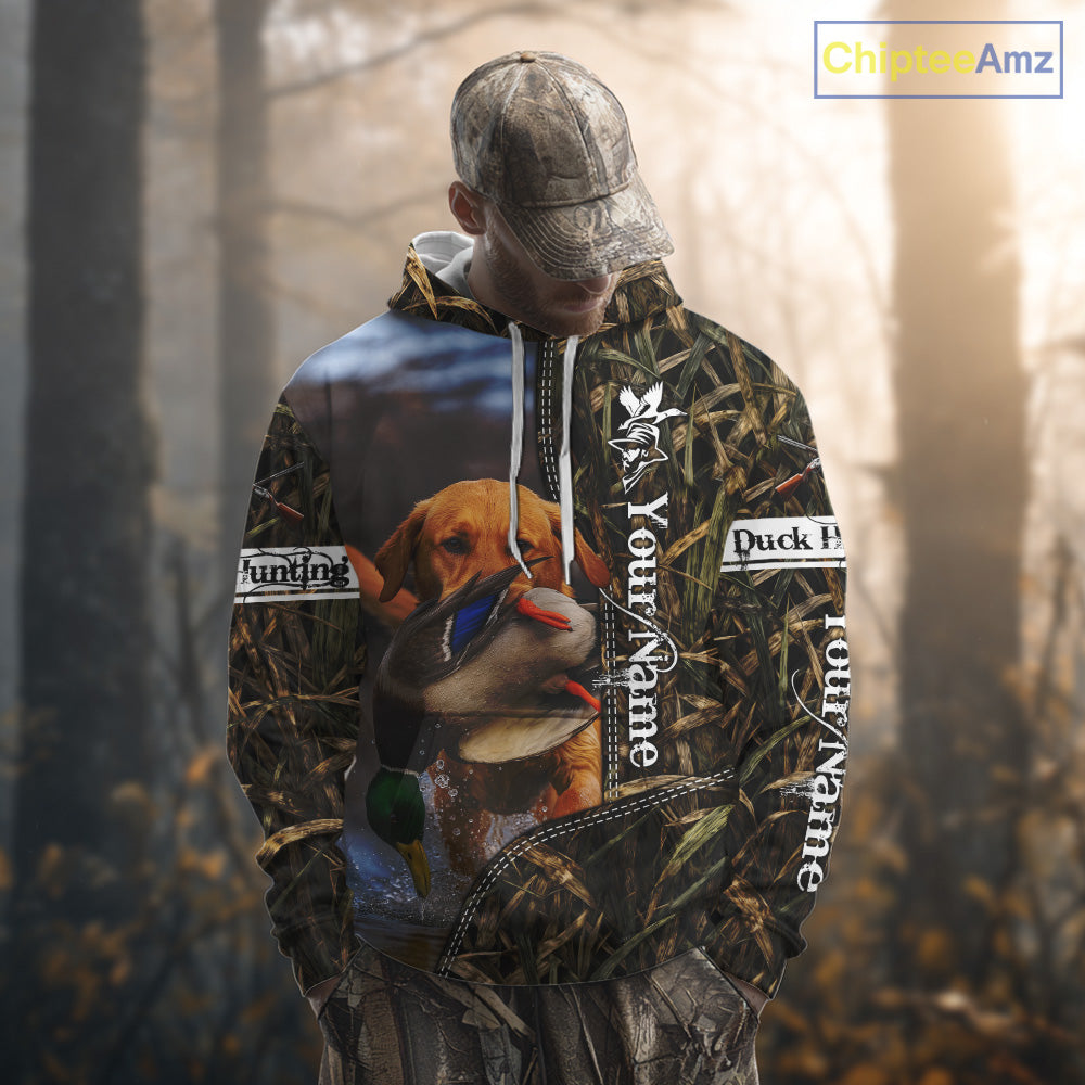 Duck Hunting Waterfowl Camouflage Shirt Yellow Labrador Retriever, Custom Name Hunting Gift NHT126
