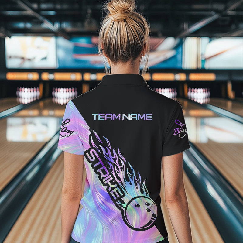 Strike Bowling Polo Shirts For Women, Custom Bowling Team Shirts Bowler Outfit IPHW5242