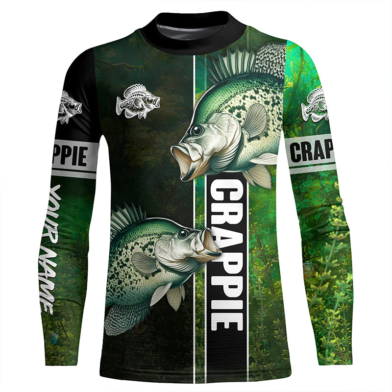 Crappie fishing green shirt Custom name Long Sleeve Fishing Shirts, fishing gifts for men, women, kid NQS4141