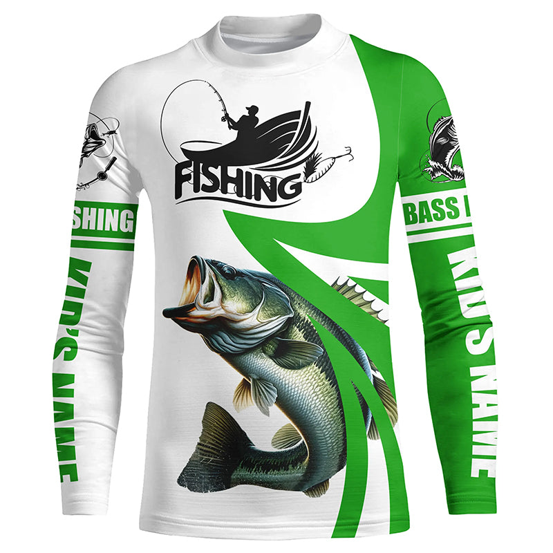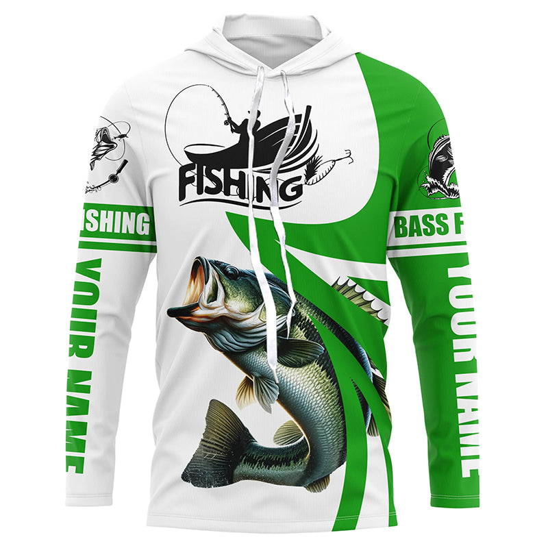 Largemouth bass fishing Custom Name sun protection long sleeve fishing shirts for men, women | Green NQS4816