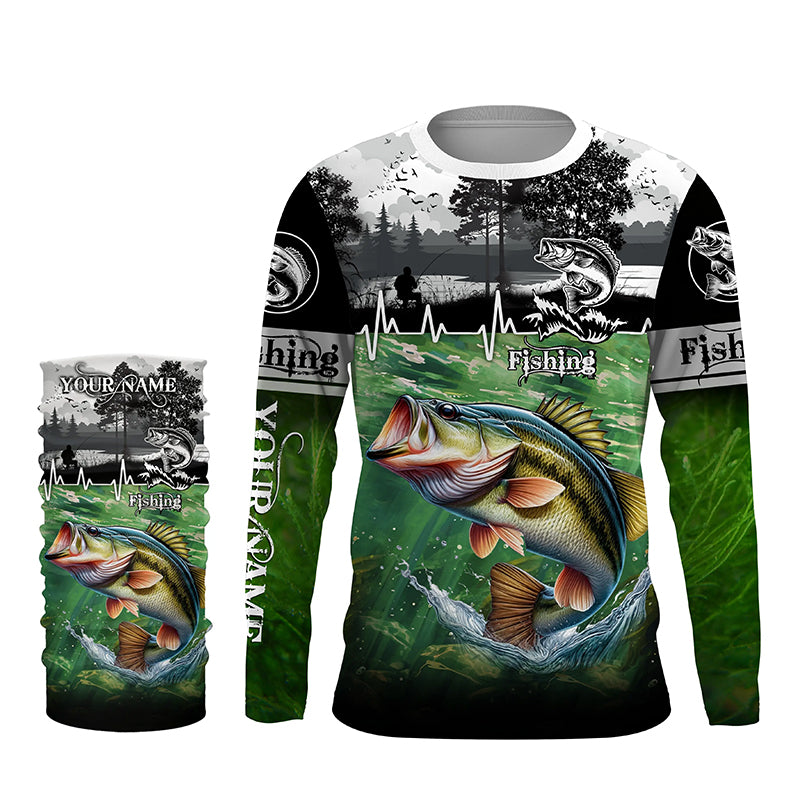 Largemouth bass Fishing UV protection Custom long sleeves fishing shirt for men, women, Kid NQS2650