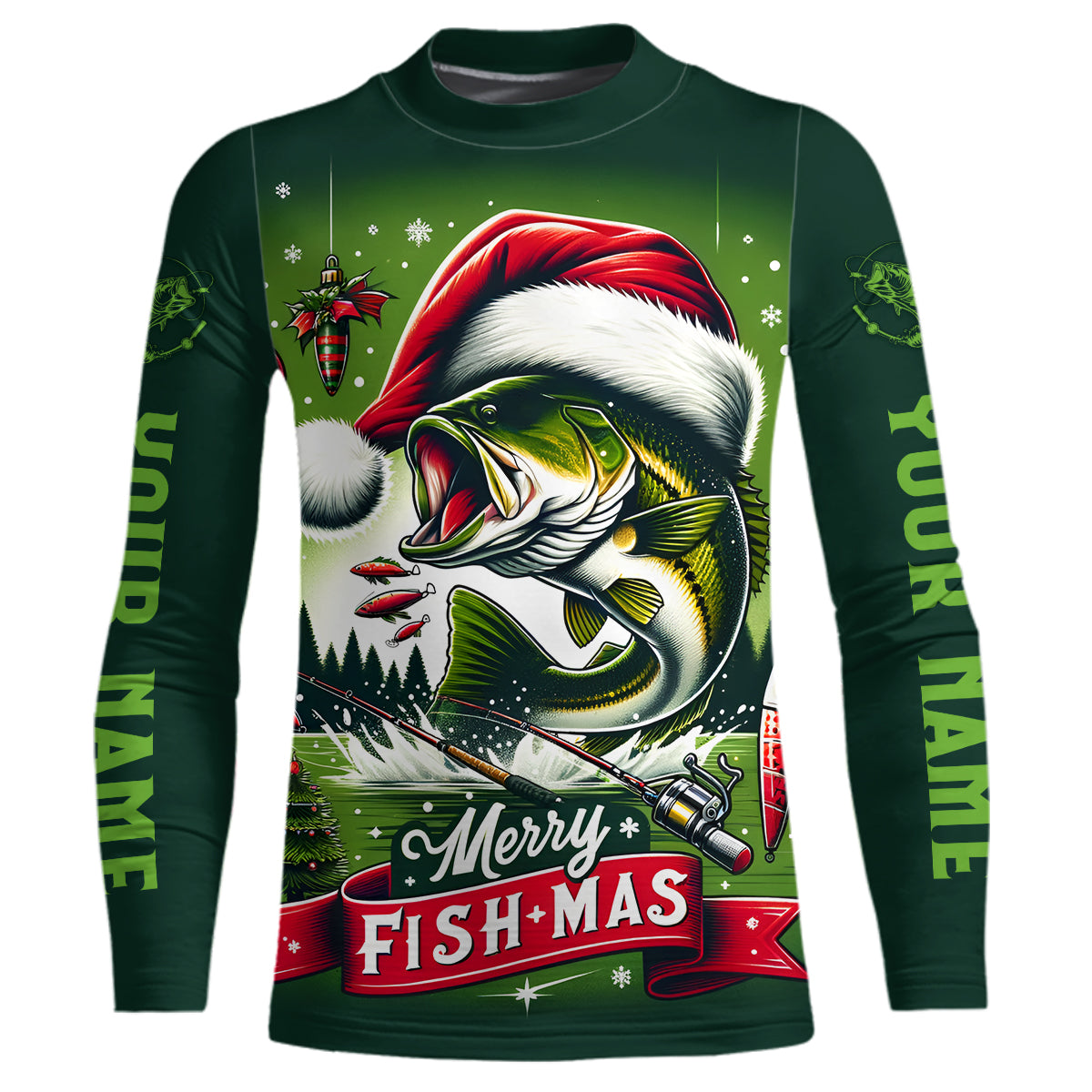 Merry Fishmas Largemouth Bass Custom Christmas Fishing Shirts, Personalized Xmas Fishing Gifts IPHW5550