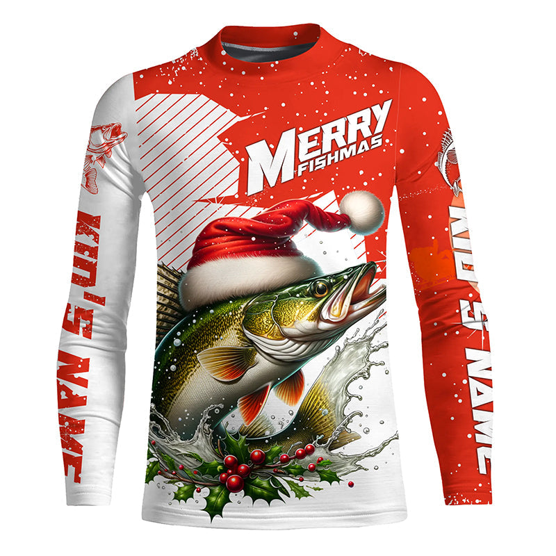 Merry Fishmas Custom Walleye Long Sleeve Christmas Fishing Shirts, Personalized Xmas Fishing Gifts IPHW5578