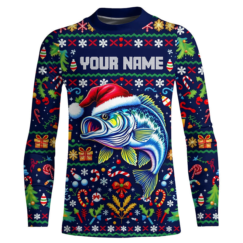 Custom Largemouth Bass Fishing Ugly Sweater Pattern Style All Over Shirts Christmas Fishing Shirt IPHW7967