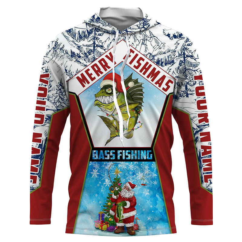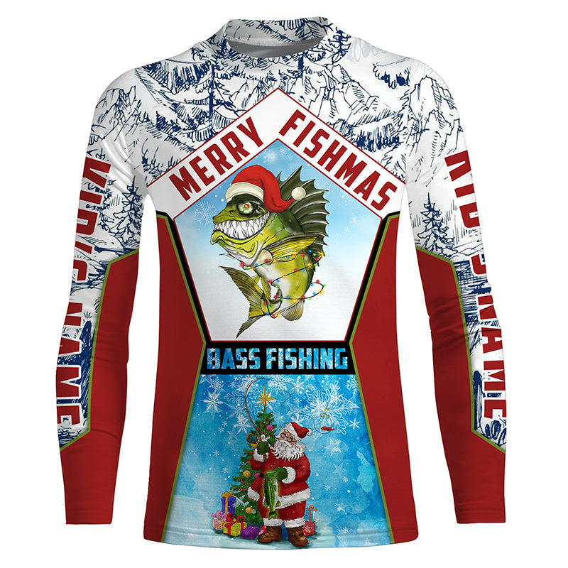 Merry fishmas Bass Fishing custom name sun protection long sleeve fishing shirts, Santa fishing jersey NQS4455