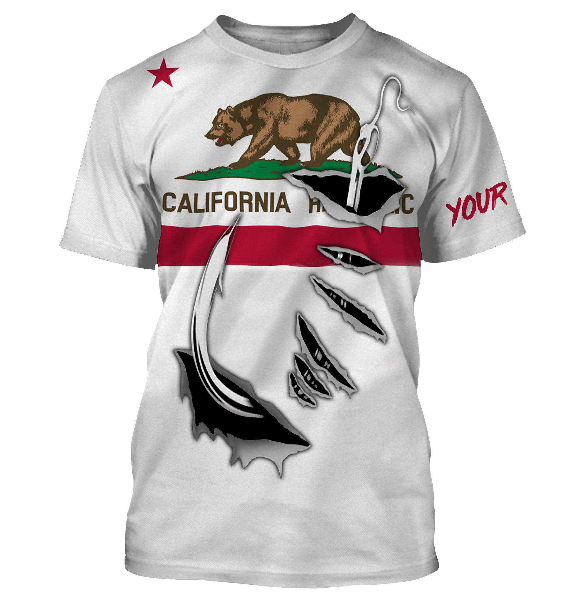 CA Fishing 3D Fish Hook California Flag UV protection quick-dry Custom long sleeves shirts personalized fishing apparel gift for Fishing lovers IPH1904