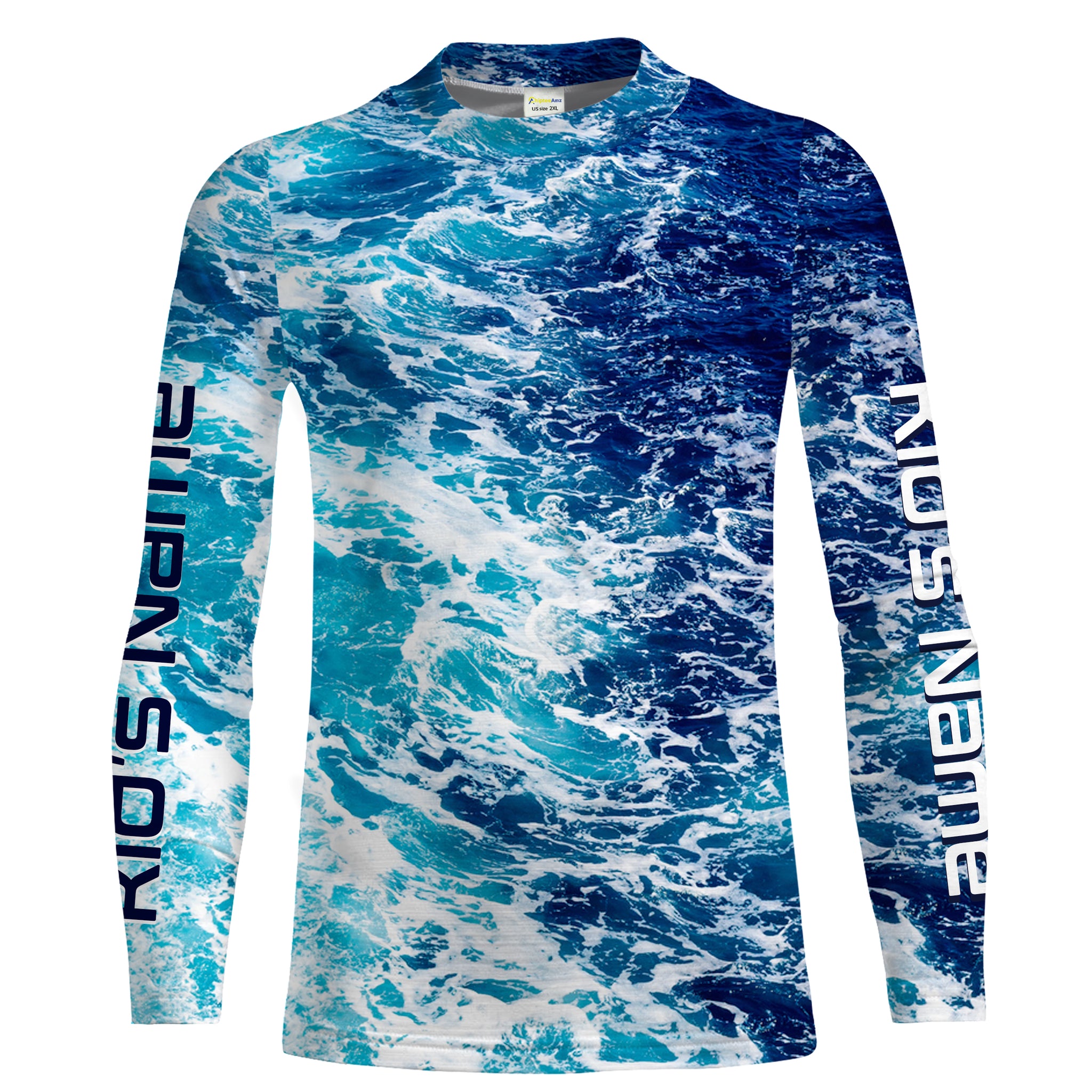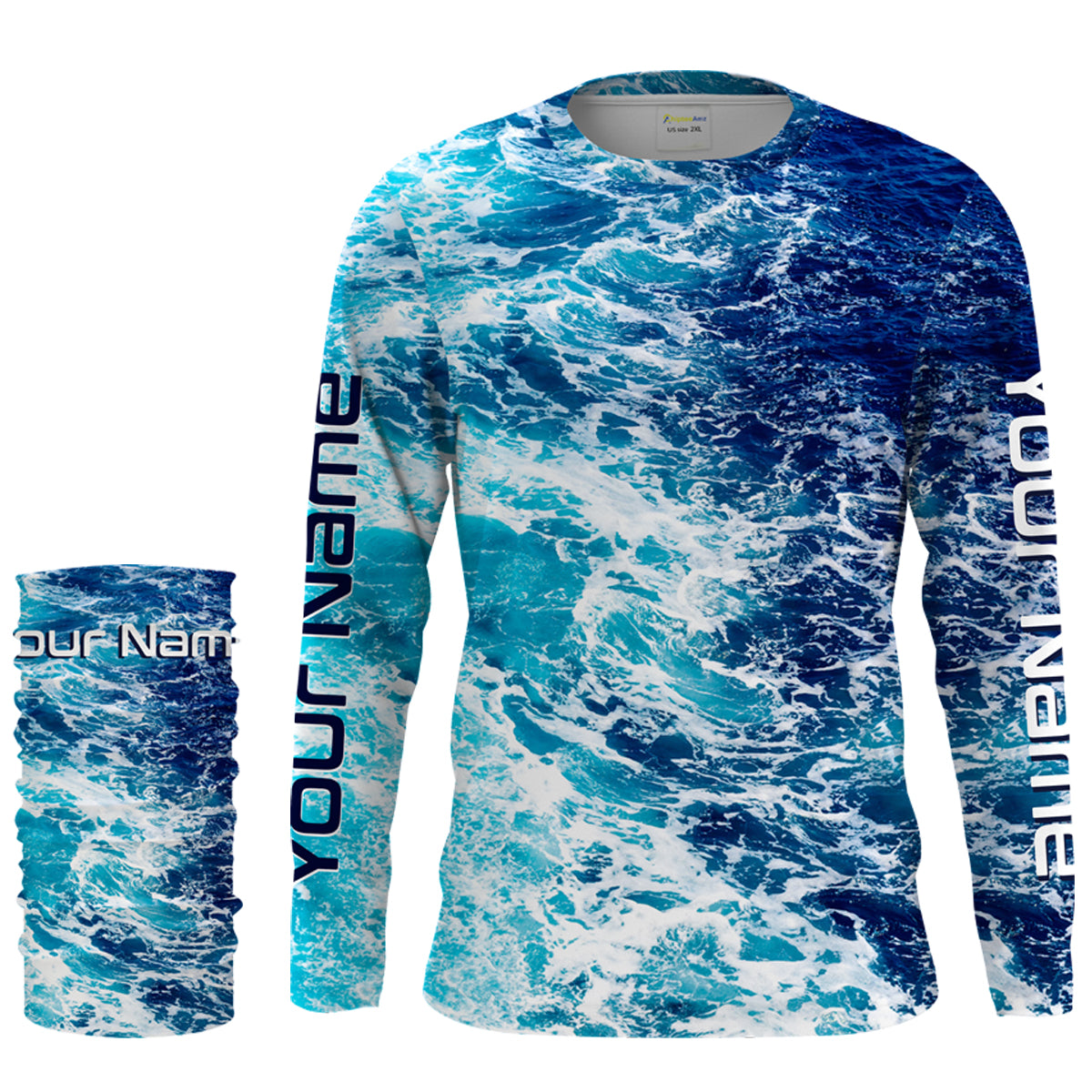 Custom Saltwater Long sleeve Fishing Shirts UV Protection, Sea wave camo Fishing Shirts - IPHW878