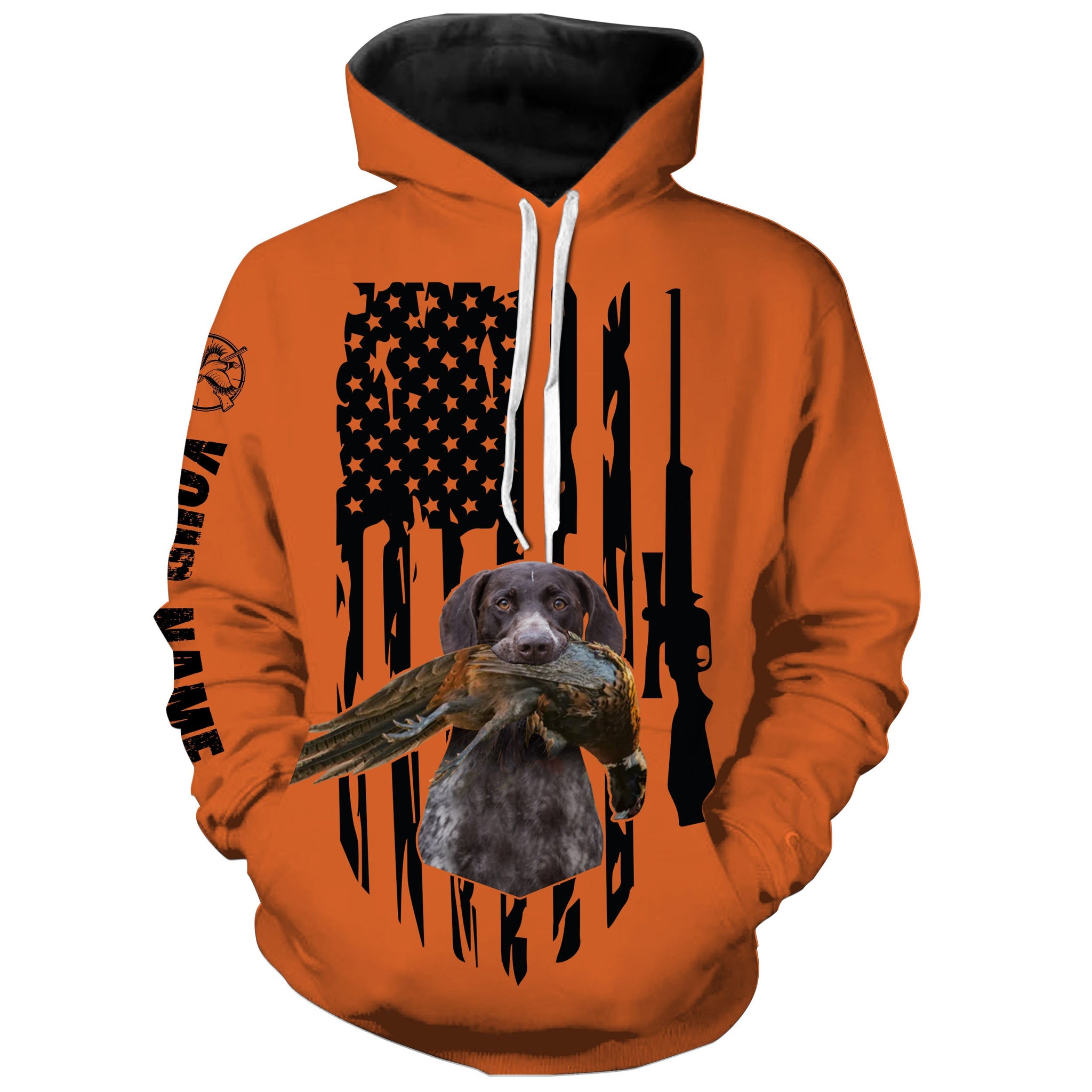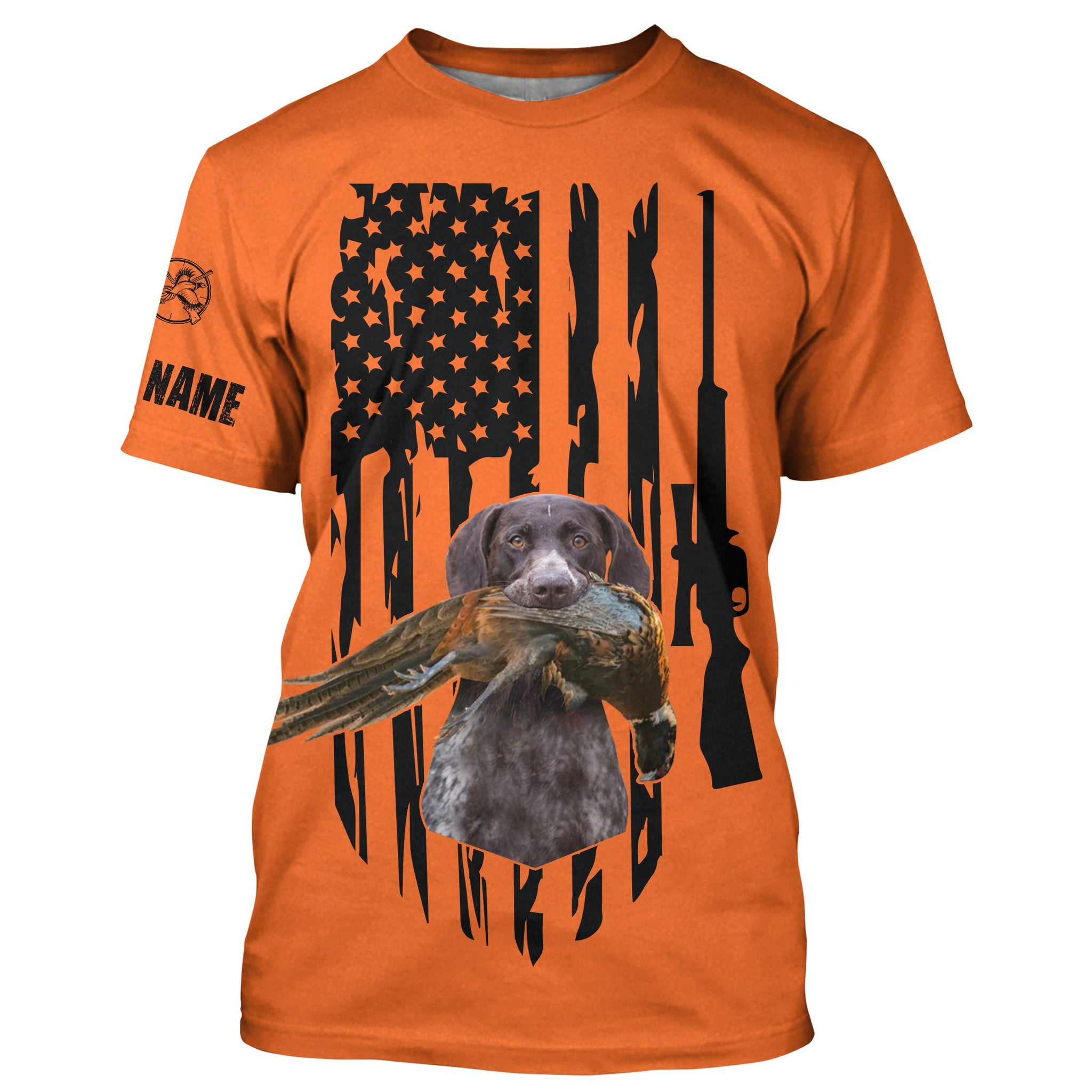 American Hunting flag Pheasant hunting with dog German Shorthaired Pointer Orange Custom Name Shirts FSD4043