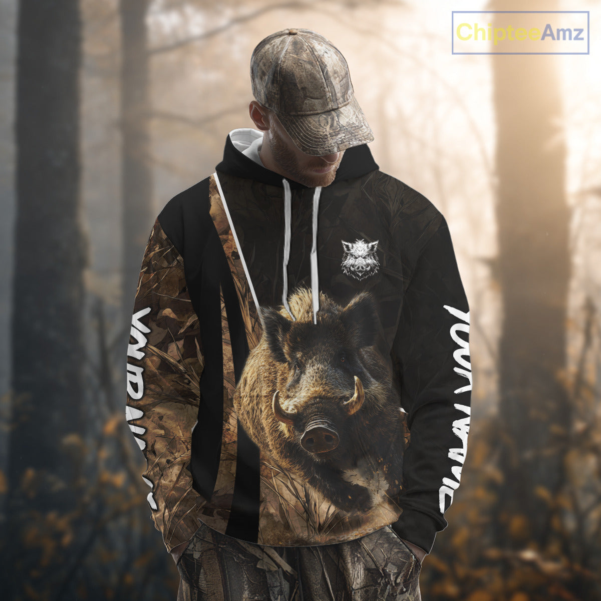 Best Custom Wild Boar Hunting Black Camo Forest 3D Printed Shirts, Hunting Gifts NHT284