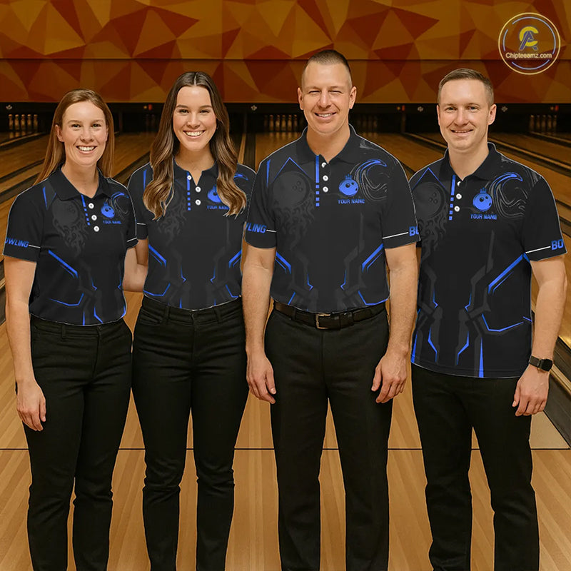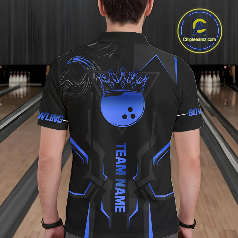 Black and Blue Bowling Polo, Quarter Zip Shirts For Men Custom Bowling Crown Team Jerseys Outfits NQS11221