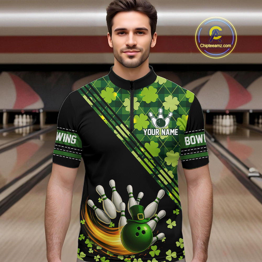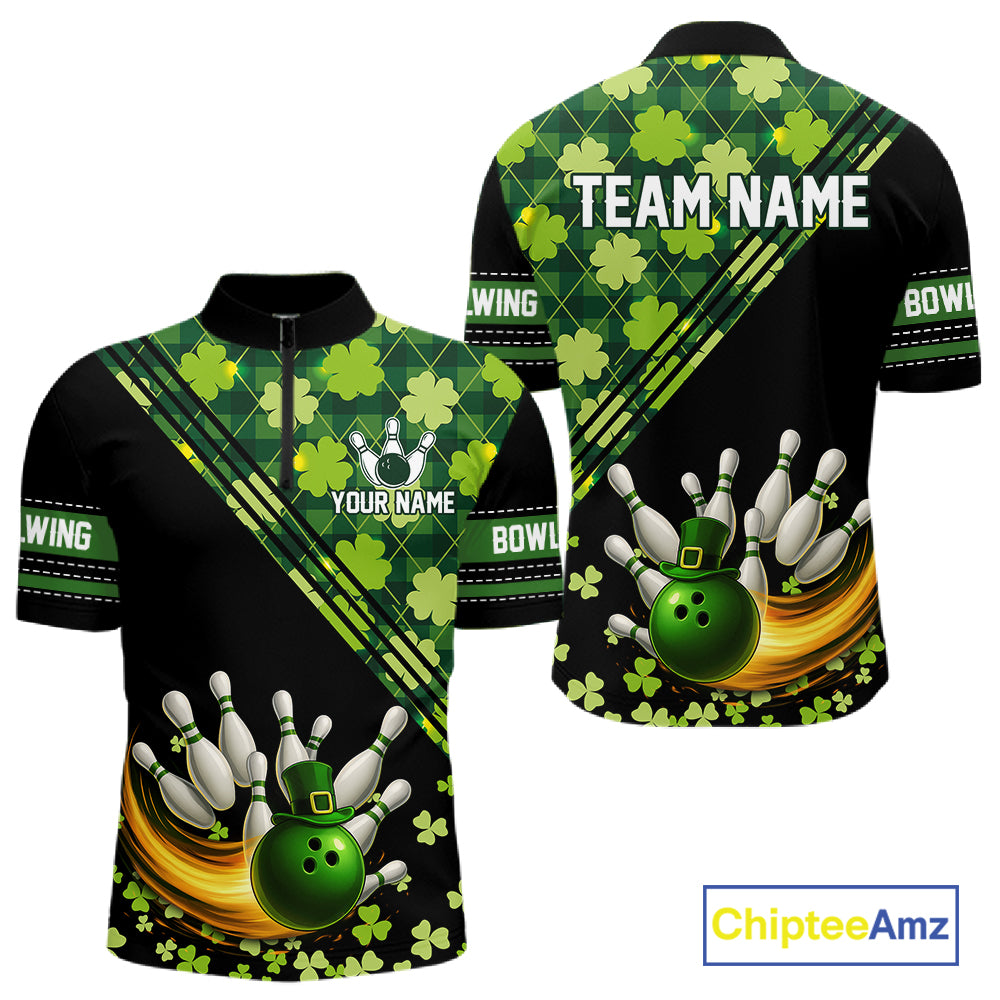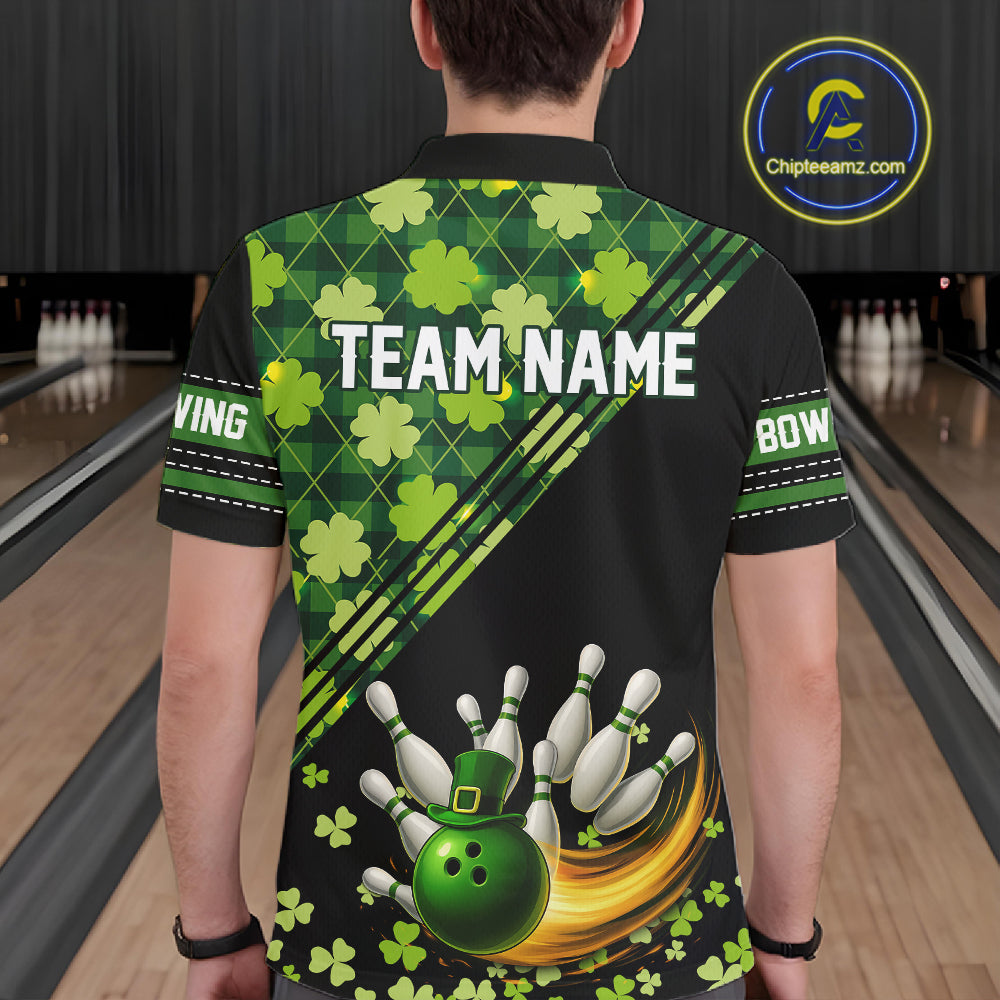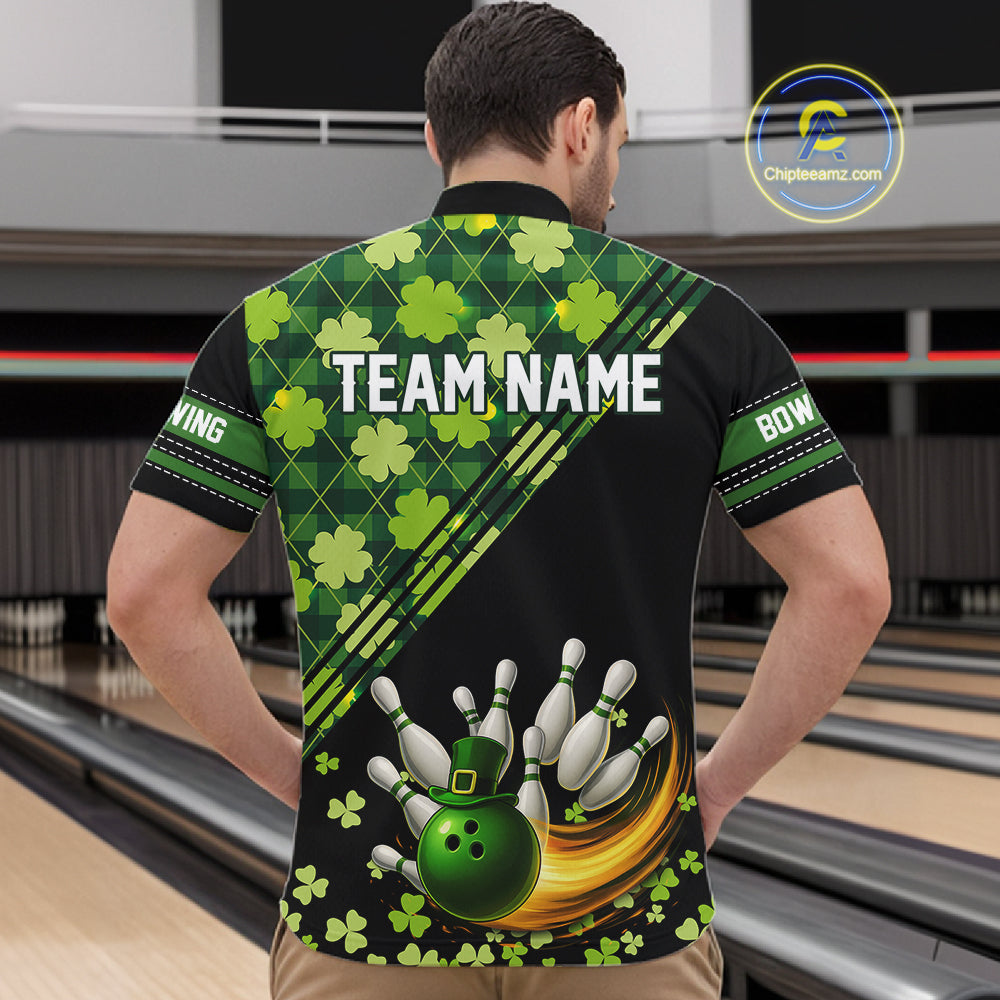 Black and Green shamrock argyle pattern Bowling Shirts For Men Custom St Patrick Team Bowling Jerseys NQS11237