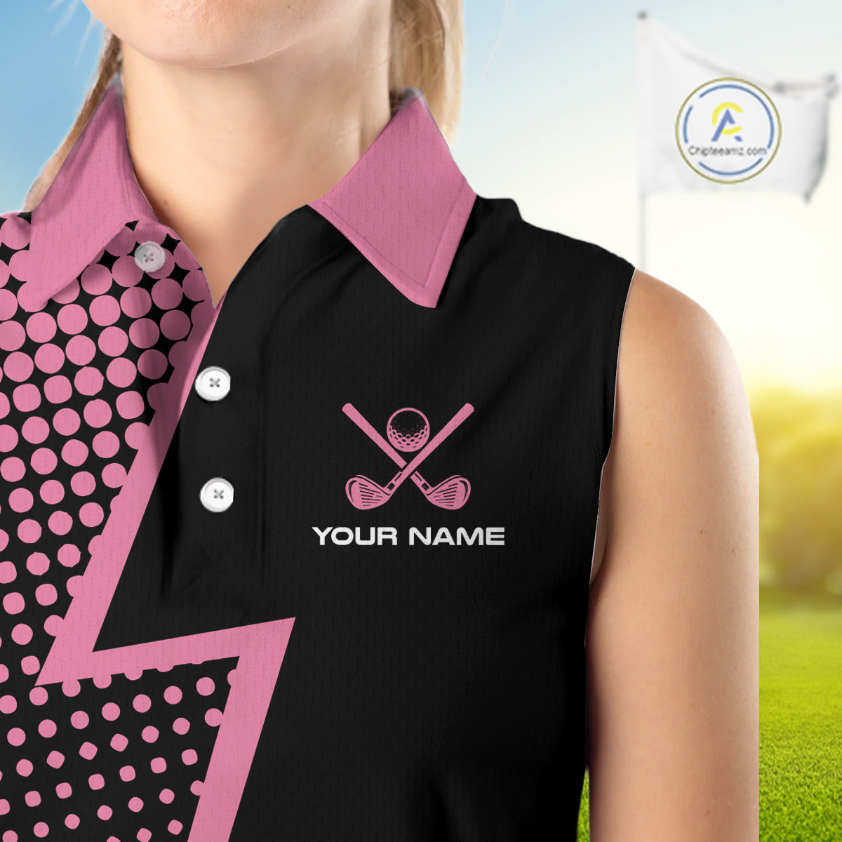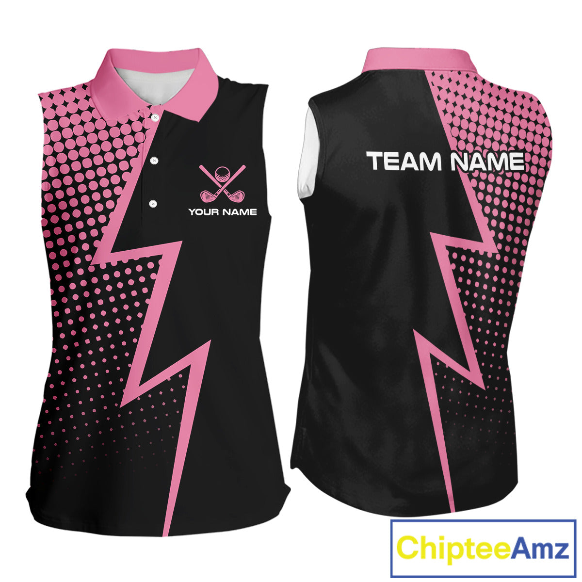 Black and Pink dots pattern Lightning Sleeveless Golf polo shirt custom golf top for ladies NQS10853