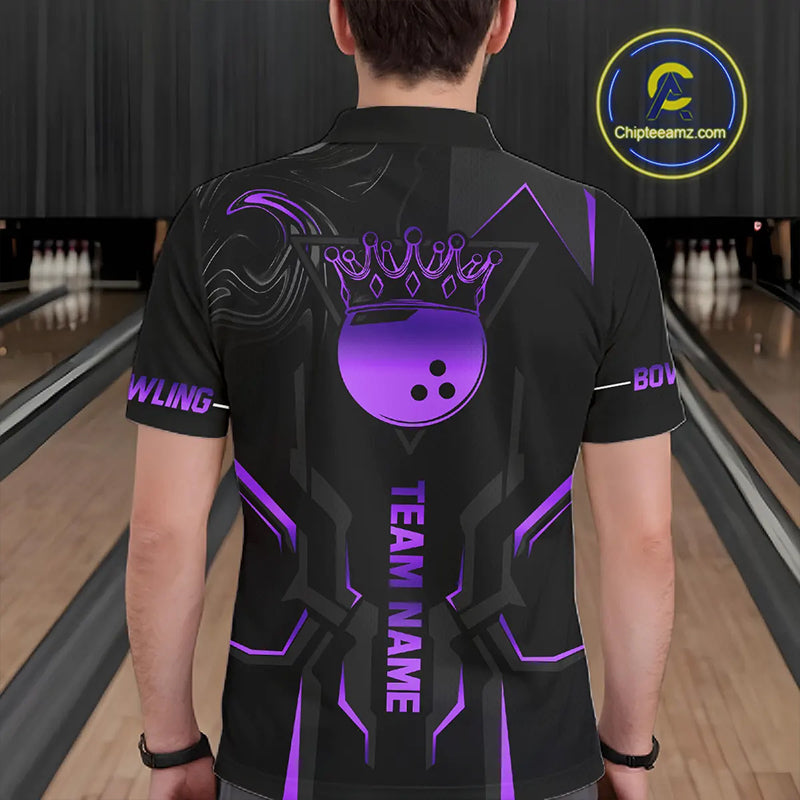 Black and Purple Bowling Polo, Quarter Zip Shirts For Men Custom Bowling Crown Team Jerseys Outfits NQS11223