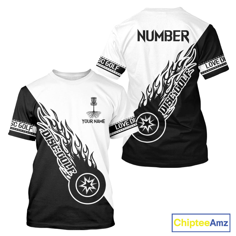 Black and White Flame Disc Golf shirts custom disc golf jersey, personalized disc golf apparel NQS11235