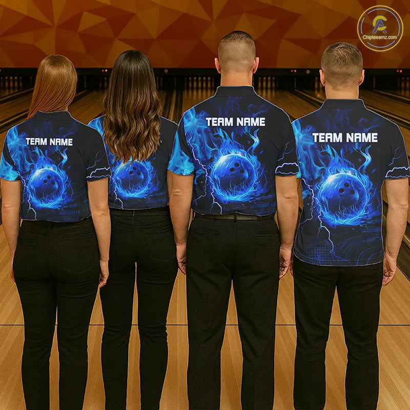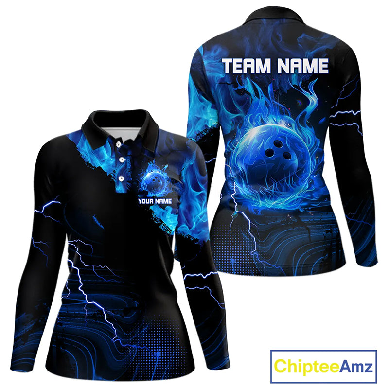Black & Blue Flame Lightning Thunder Bowling Shirt For Women Custom Bowling Team Jersey, Bowlers Gift NQS11227