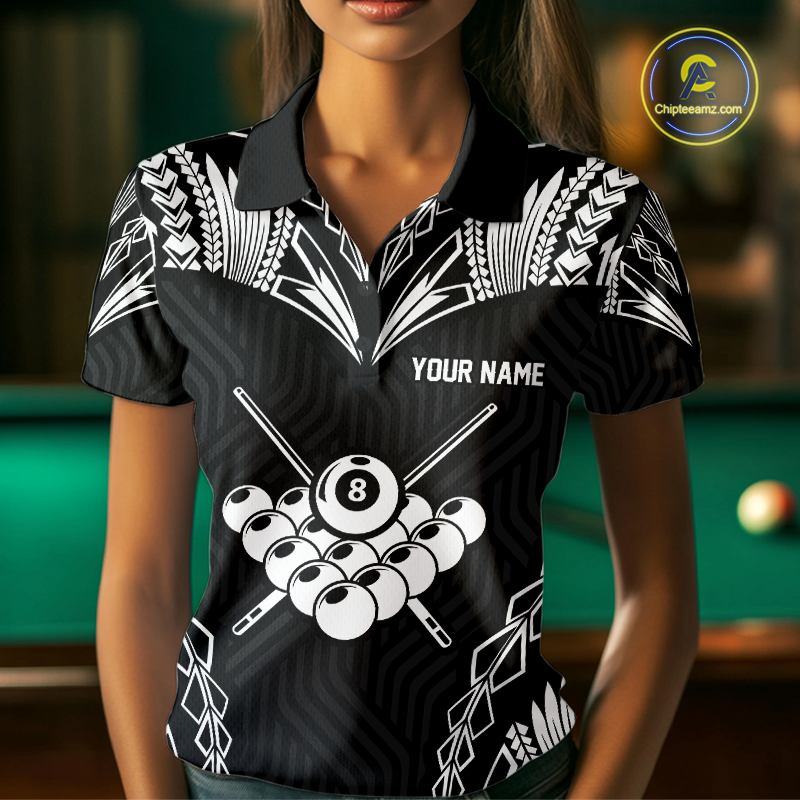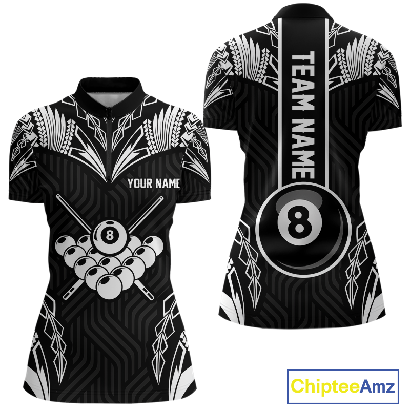 Custom 8 Ball Tribal Pattern Billiard Shirts for Women Billiard Team Shirts Billiard League Polo & 1/4 Zip NNT95