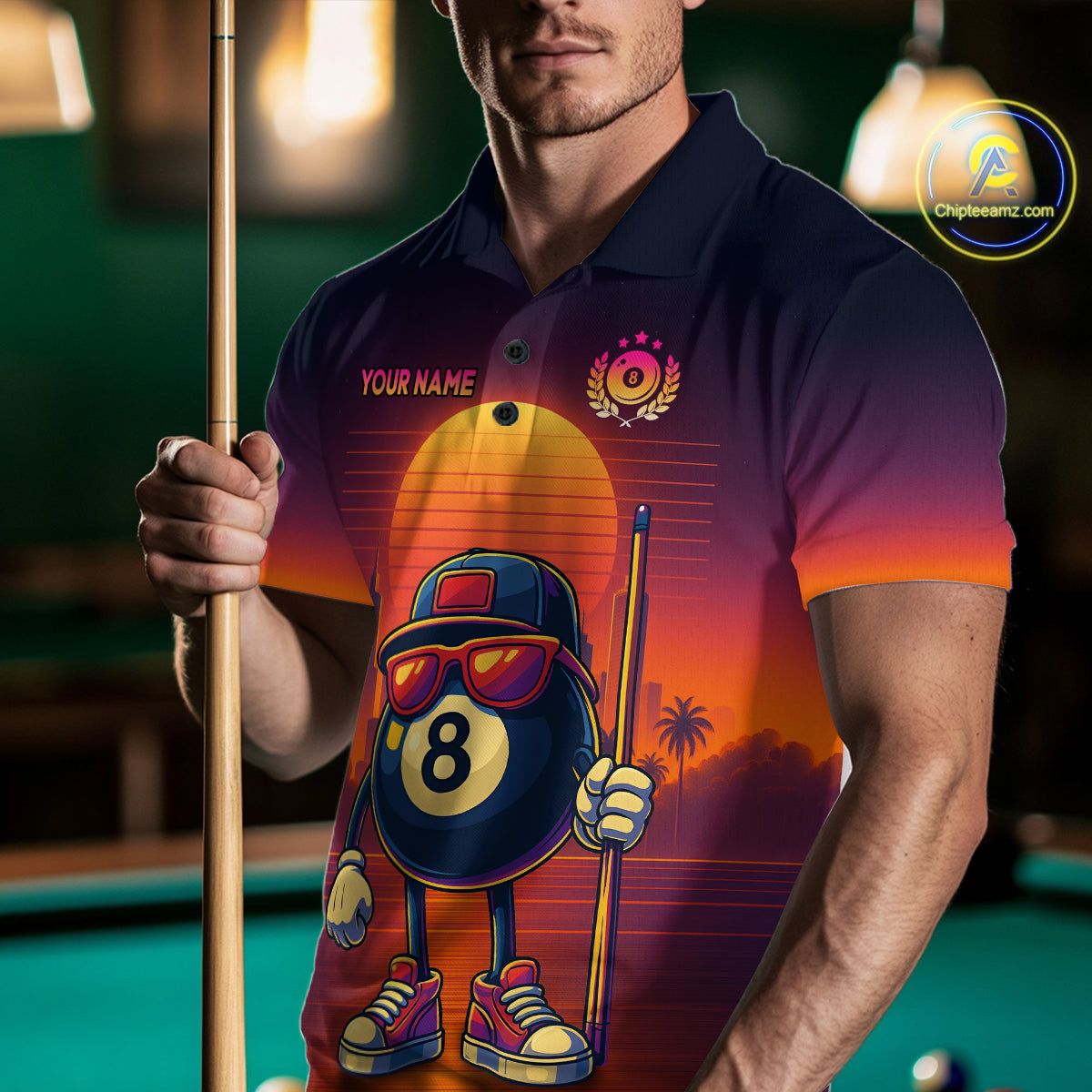 Custom Funny 8 Ball Retro Billiard Shirts for Women Billiard Team Shirts Polo & 1/4 Zip NNT93