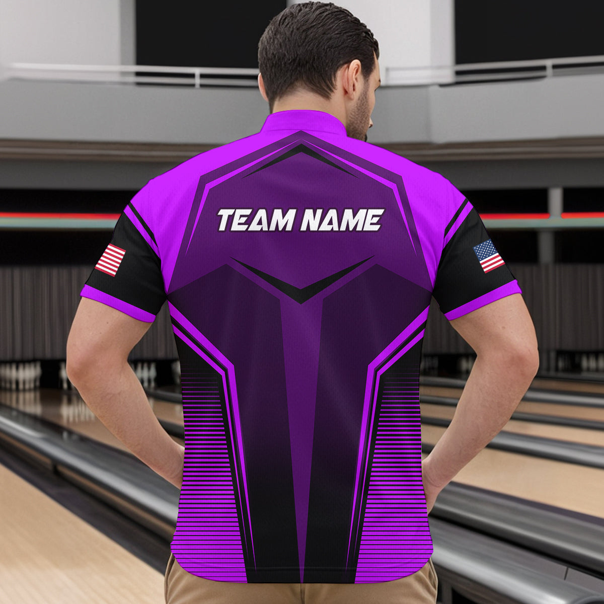 Custom Purple Bowling Jersey for Men Bowling Team Shirts Bowling Uniform Polo & 1/4 Zip HNT158
