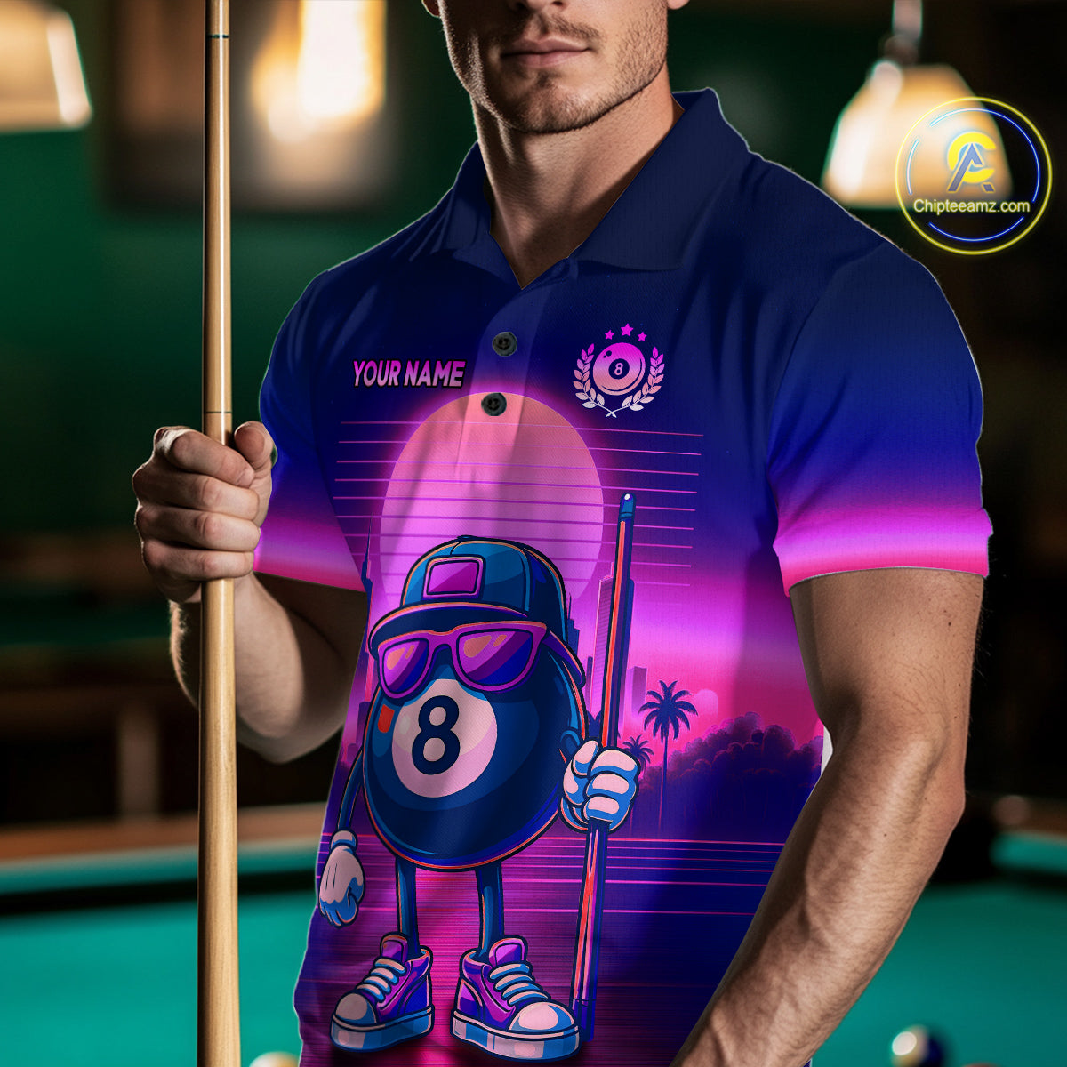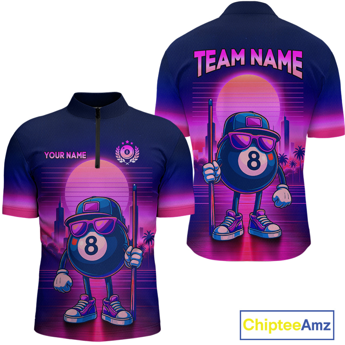 Custom Purple Funny 8 Ball Retro Billiard Shirts for Women Billiard Team Shirts Polo & 1/4 Zip NNT93