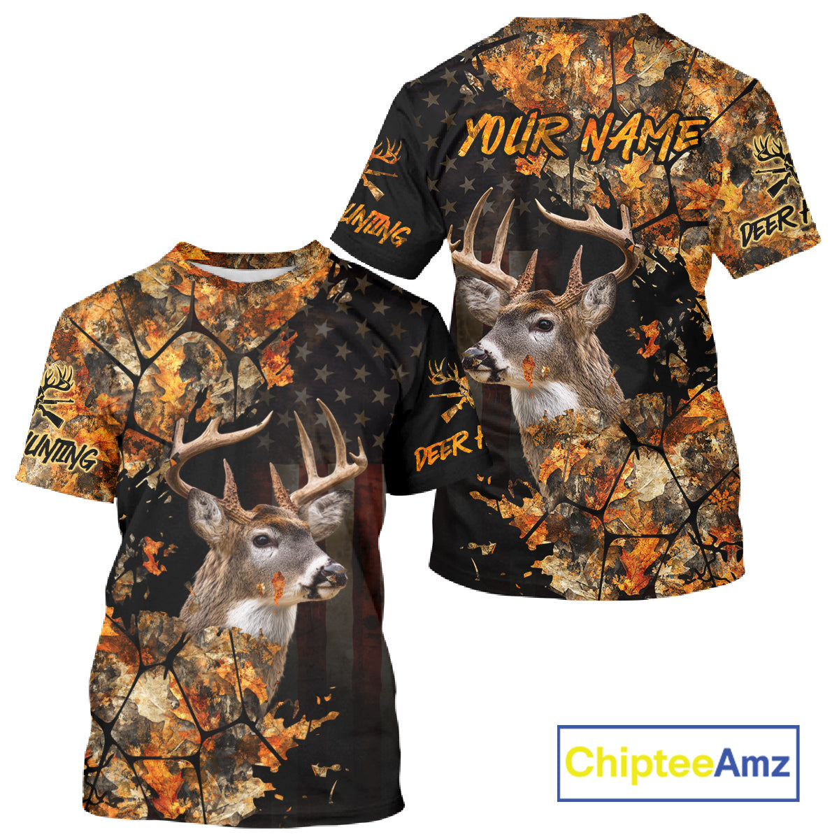 Deer Hunting Shirt US Flag 3D All Over Print Orange Black, Custom Name Personalized Gift NHT296