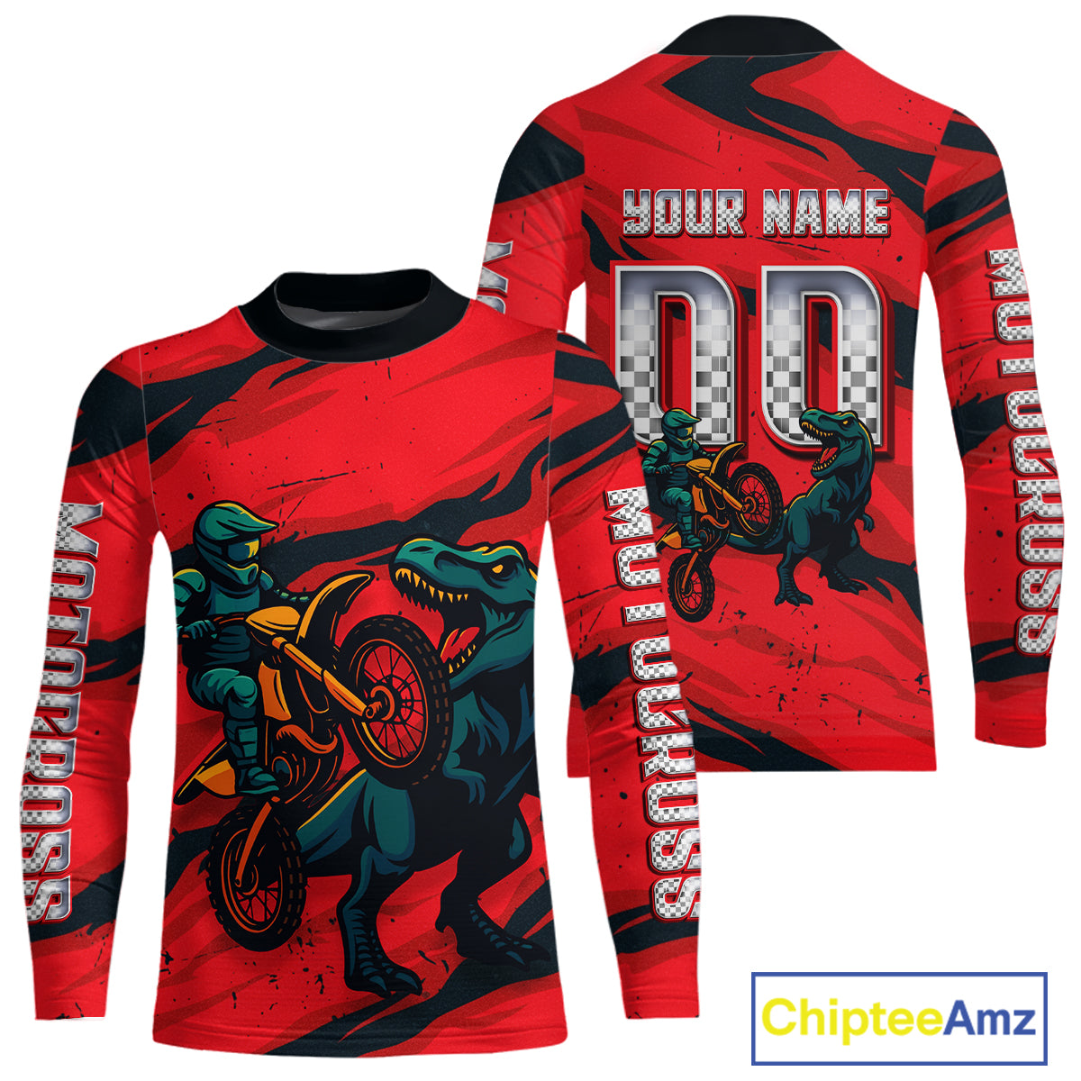 Dinosaur Motocross Jersey Custom Men Women Kid Dirt Bike Shirts Red Motorcycle Shirt XM437