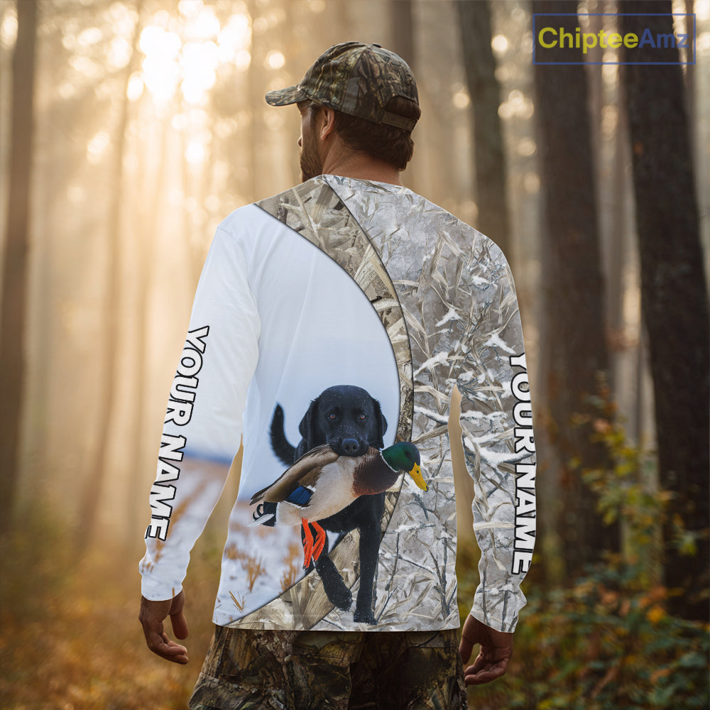 Duck Hunting Winter Camo Black Lab 3D All-Over Printed Shirt, Gift for Waterfowl Hunters NHT250