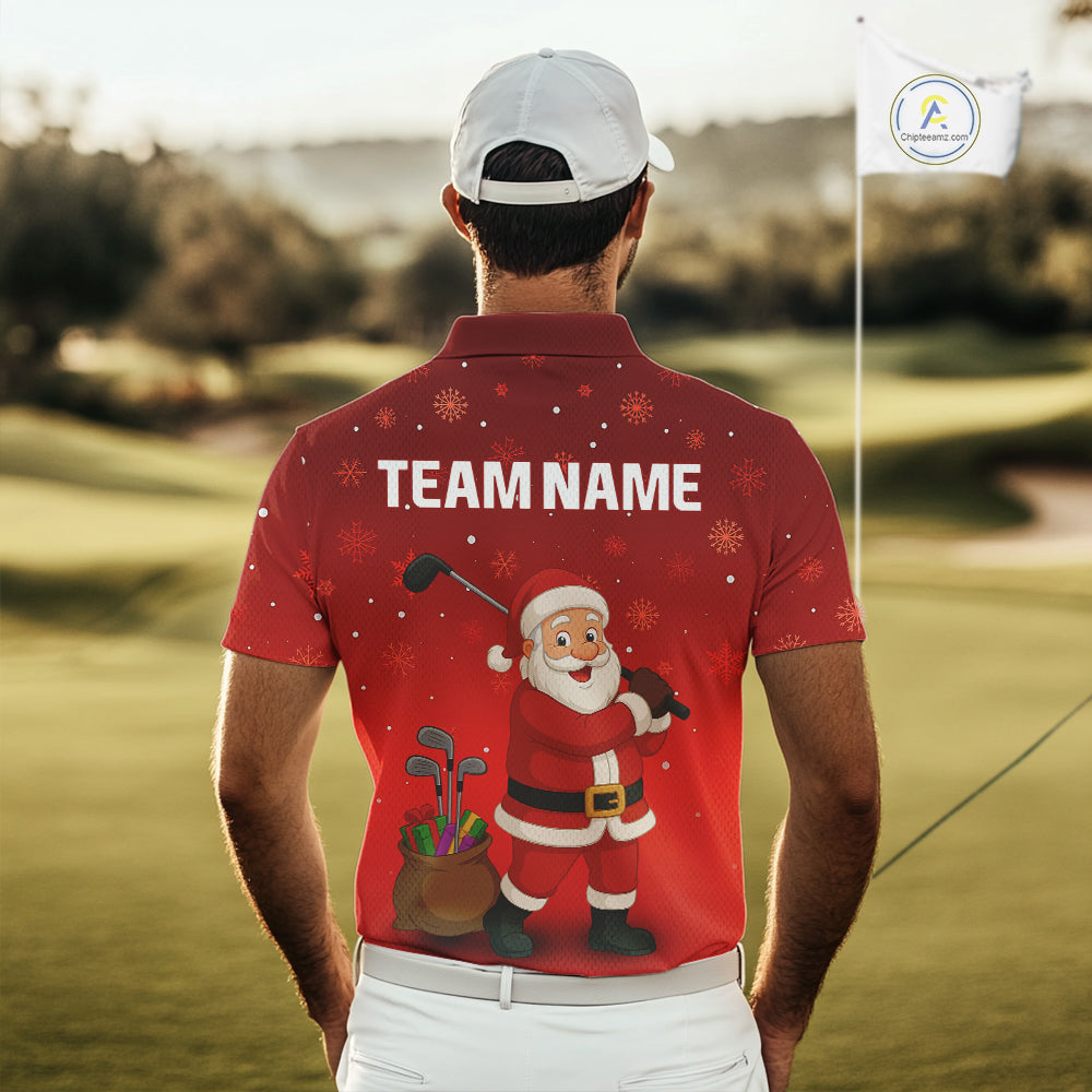 Funny Santa Golf Red Christmas snowflake pattern Men's Golf Polo shirts Custom Xmas Golf Outfits NQS10993