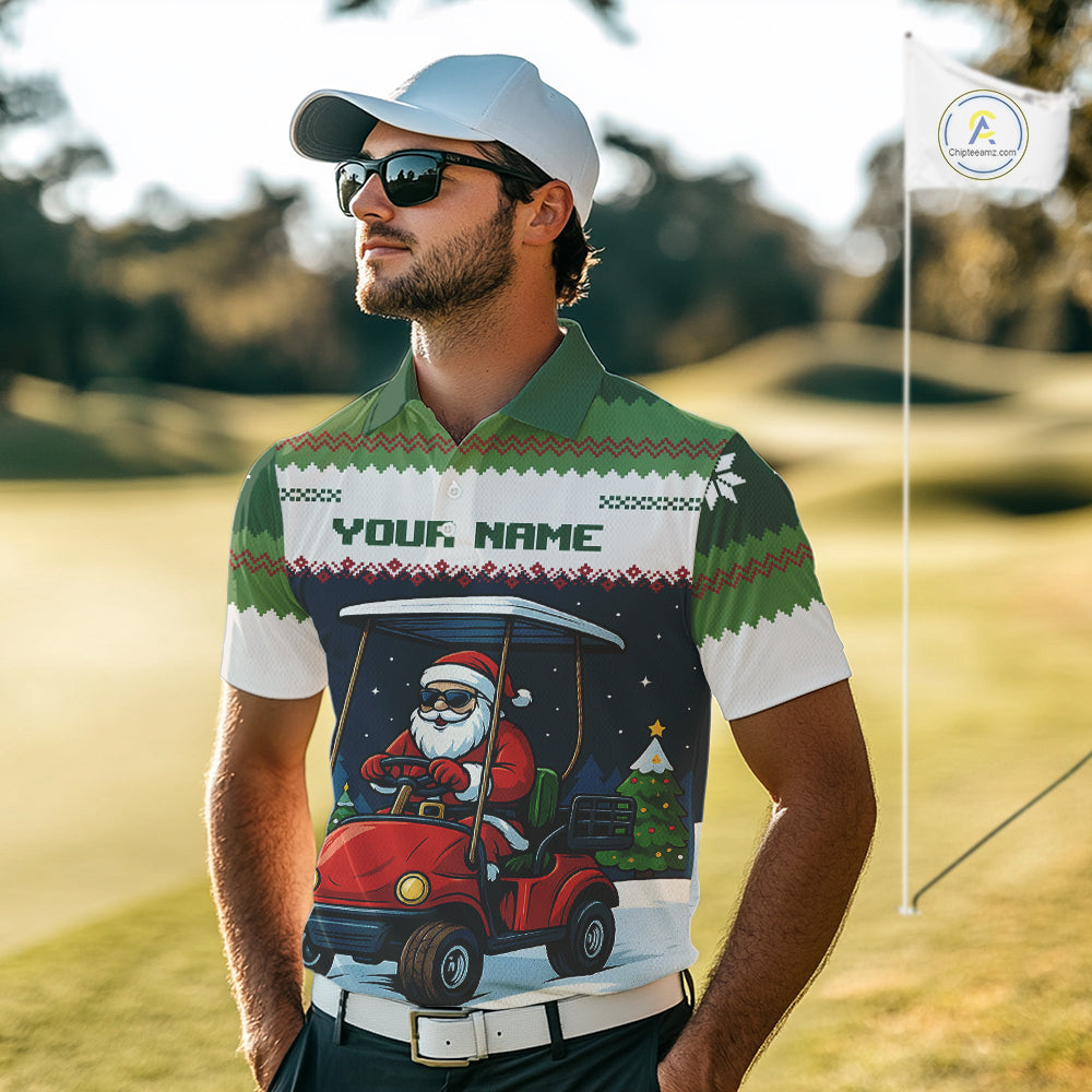 Funny Santa golf ugly Christmas pattern Golf polo shirts for men custom gifts for the golfer NQS11078