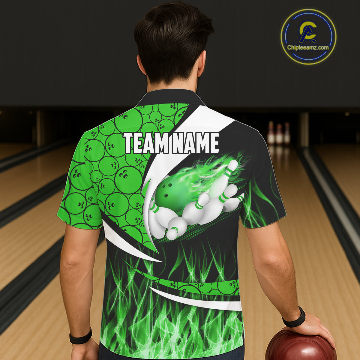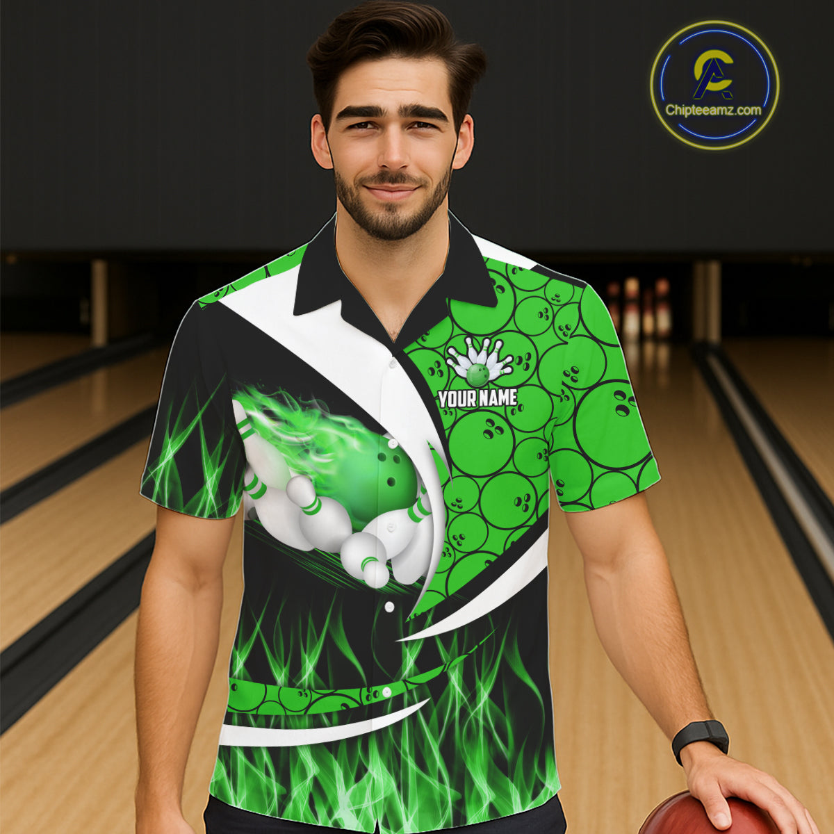 Green Flame Bowling Camo Bowling Hawaiian Shirts Custom Bowling Team Bowler Jerseys NQS11196