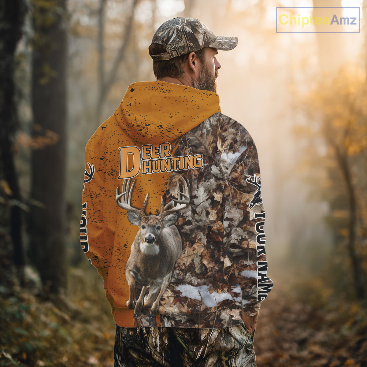 Hunting Shirt with Running Deer Design – Blaze Orange Camo Custom Name 3D Print NHT288