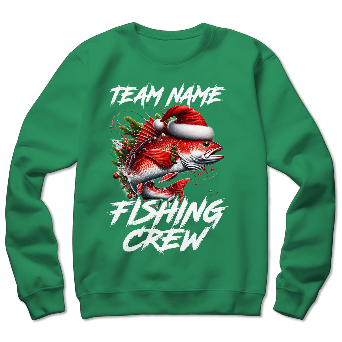 Custom Christmas Redfish Fishing Team Shirts, Red Drum Fishing Crew Sweatshirt, Christmas Fishing Gifts IPHW5663