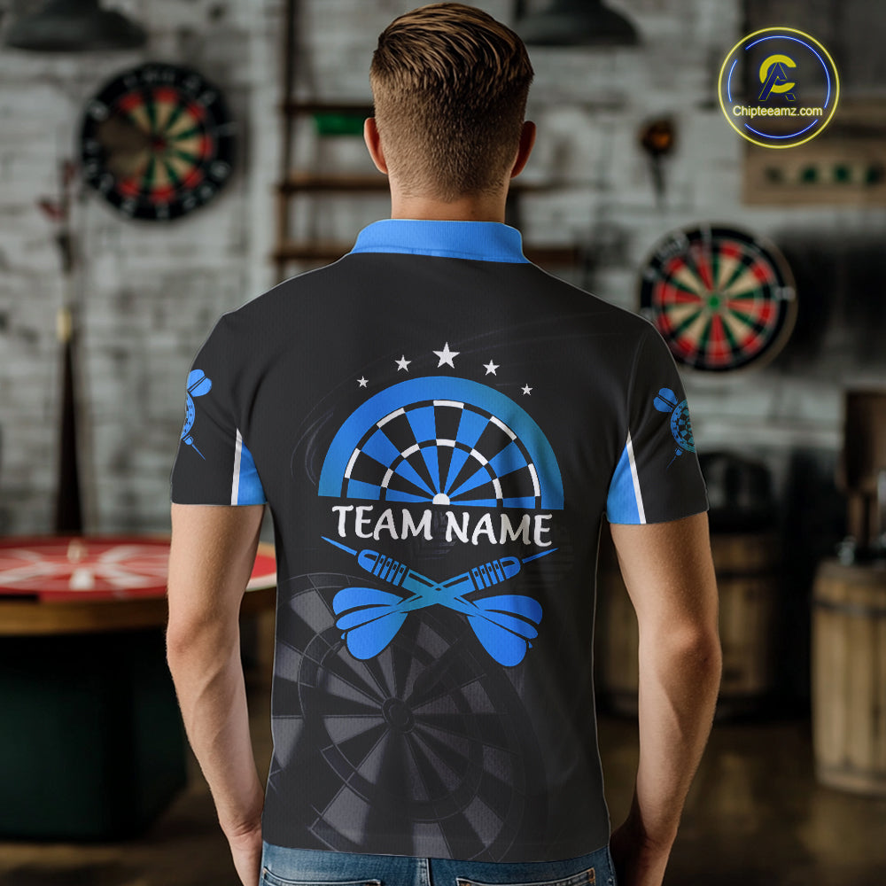 Black And Blue Darts Jersey For Men Custom Team Polo & Quarter Zip Darts Shirt Uniform TDM5411