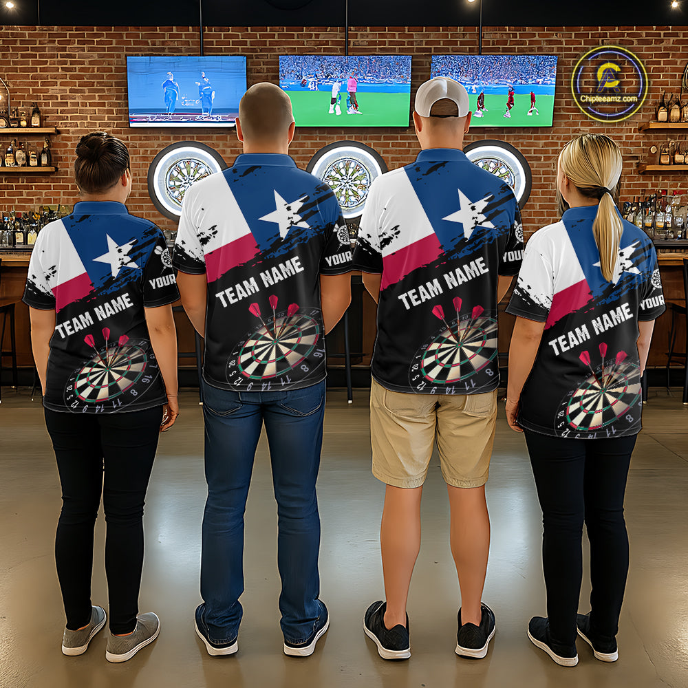 Personalized Grunge Texas Flag Mens Darts Shirt Custom Texas Darts Jersey Team Polo & 1/4 Zip TDM5415