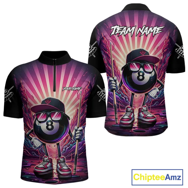 Funny 8 Ball Pool Neon Graffiti Billiard Shirt For Men Custom Billiard Jersey Team Polo & 1/4 Zip TDM5443