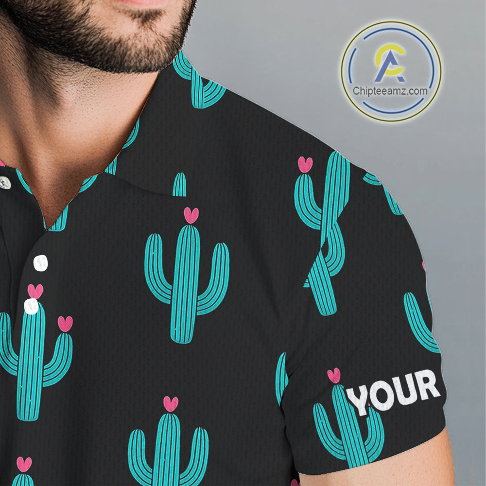 Personalized black and green cactus flower pattern mens golf polo shirts custom cactus golf shirts NQS9942