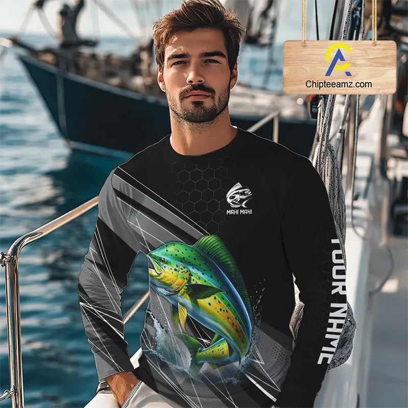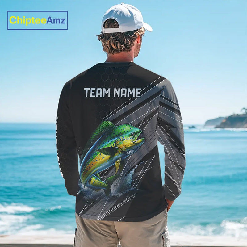Personalized Black camo Mahi mahi Fishing Jersey, Dorado Long Sleeve Fishing Tournament Shirts NQS11034