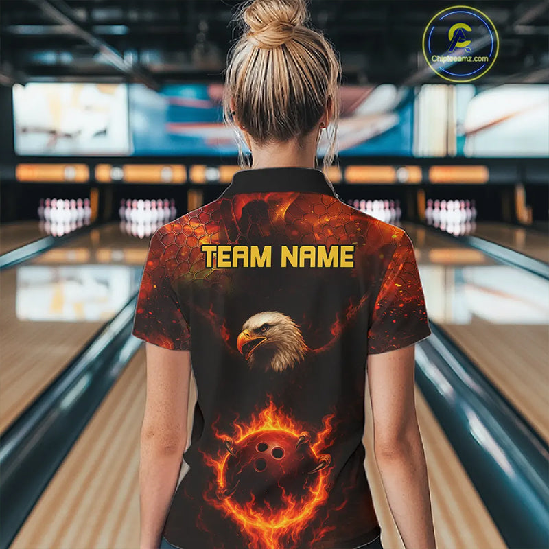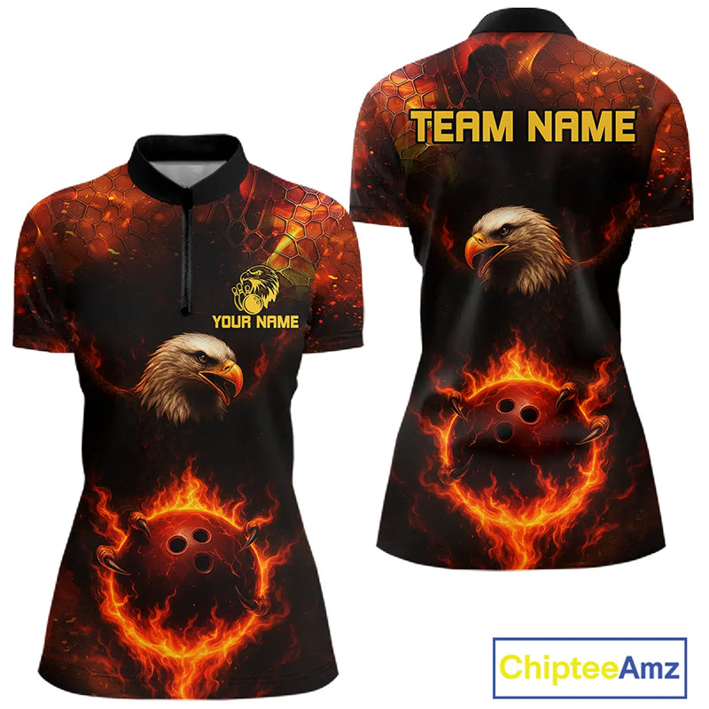 Personalized Flame Eagle Bowling Polo, Quarter Zip Shirts For Women Custom Team Eagle Bowling Jerseys NQS11236
