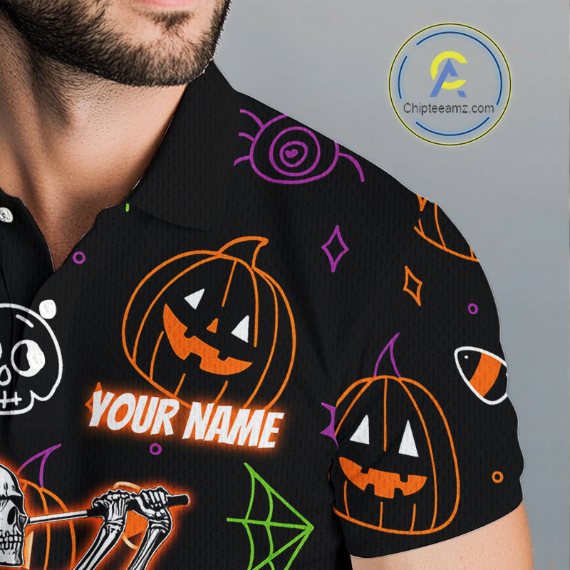 Personalized Funny Halloween Pattern Skull Golf Polo Shirts For Men, Halloween Mens Golf Gifts NQS10836