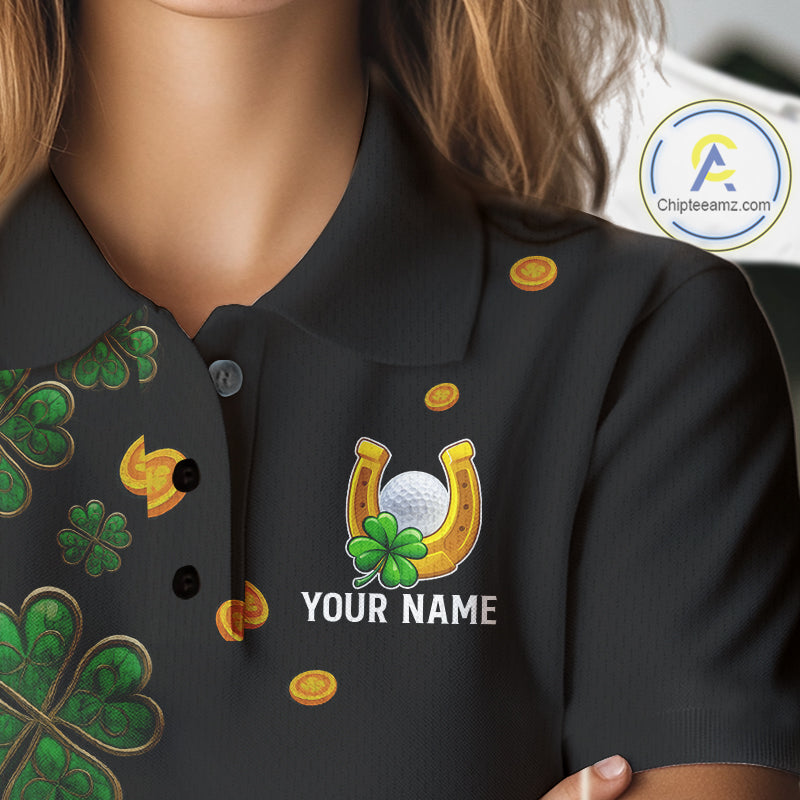 Personalized Green Clover St Patrick's Day pattern Golf Polo Shirts For Women, Best ladies golf wear NQS11207