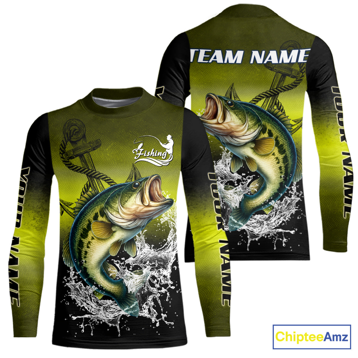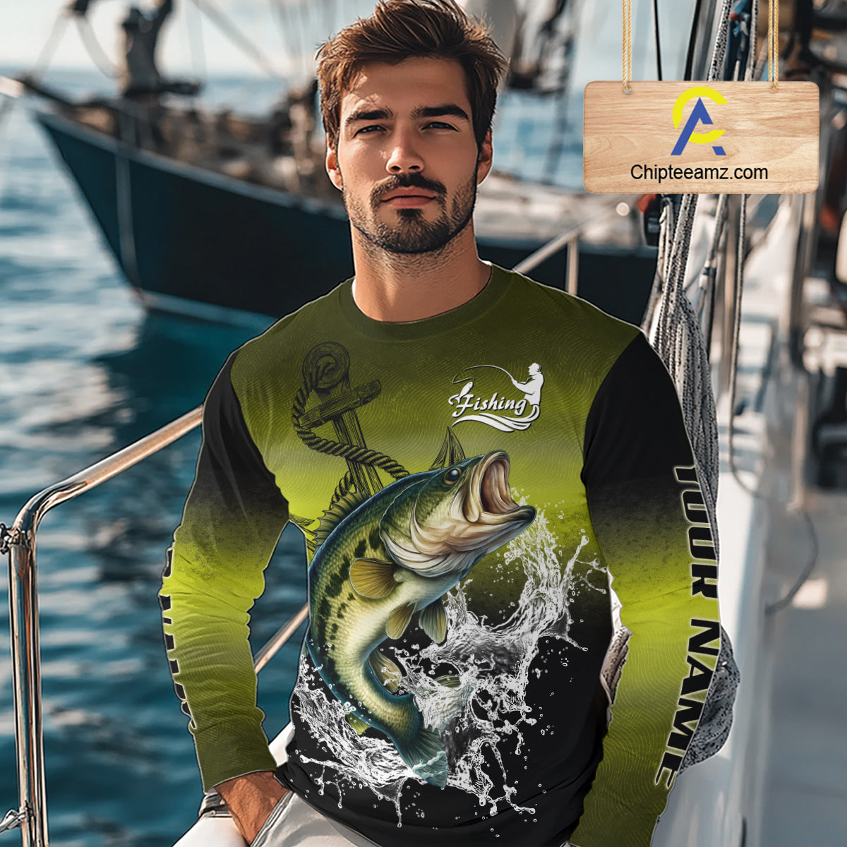 Personalized Largemouth Bass Fishing green scales fishing shirts Custom performance fishing apparel NQS11115
