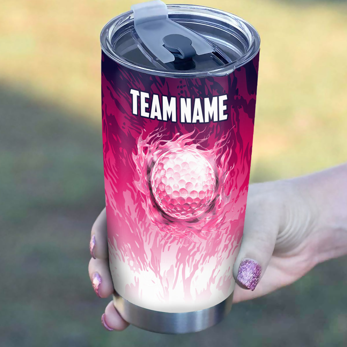 Pink Camo Flamingo Flame Golf Ball Custom Funny Stainless Steel Tumbler Cup - personalized golf gifts NQS9875