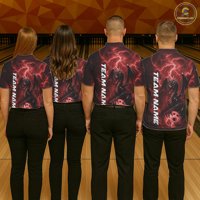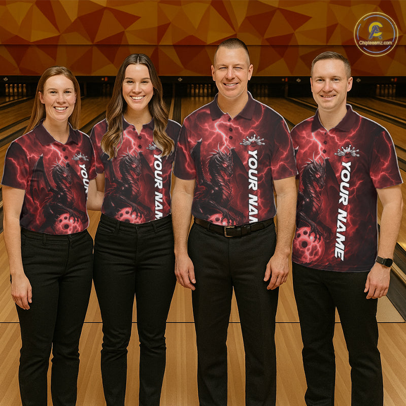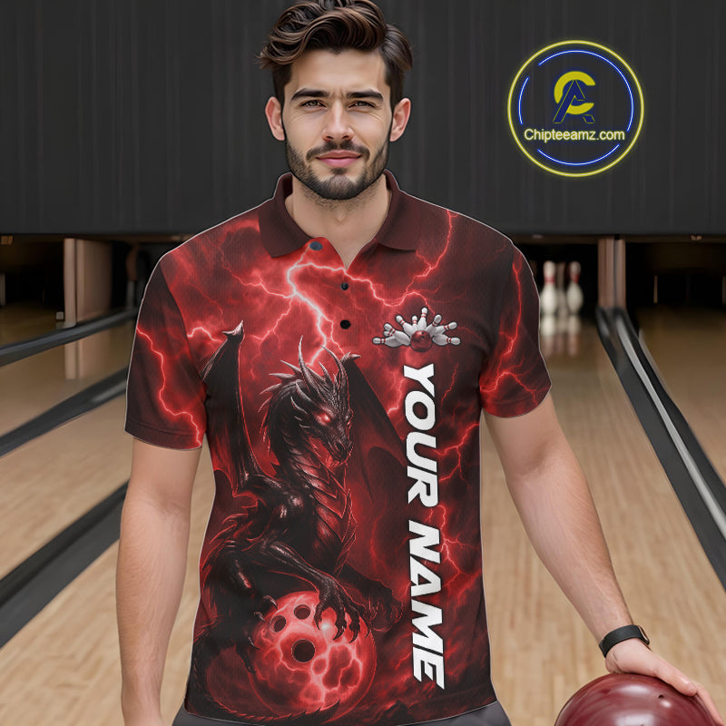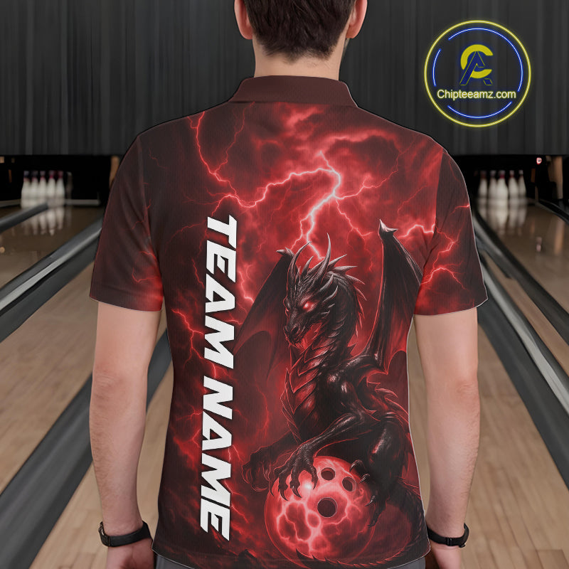 Custom Red Thunder Lightning Bowling Team Men Polo Shirt, Dragon Bowling Jerseys IPHW10195