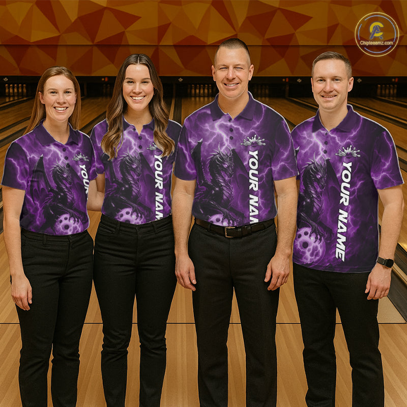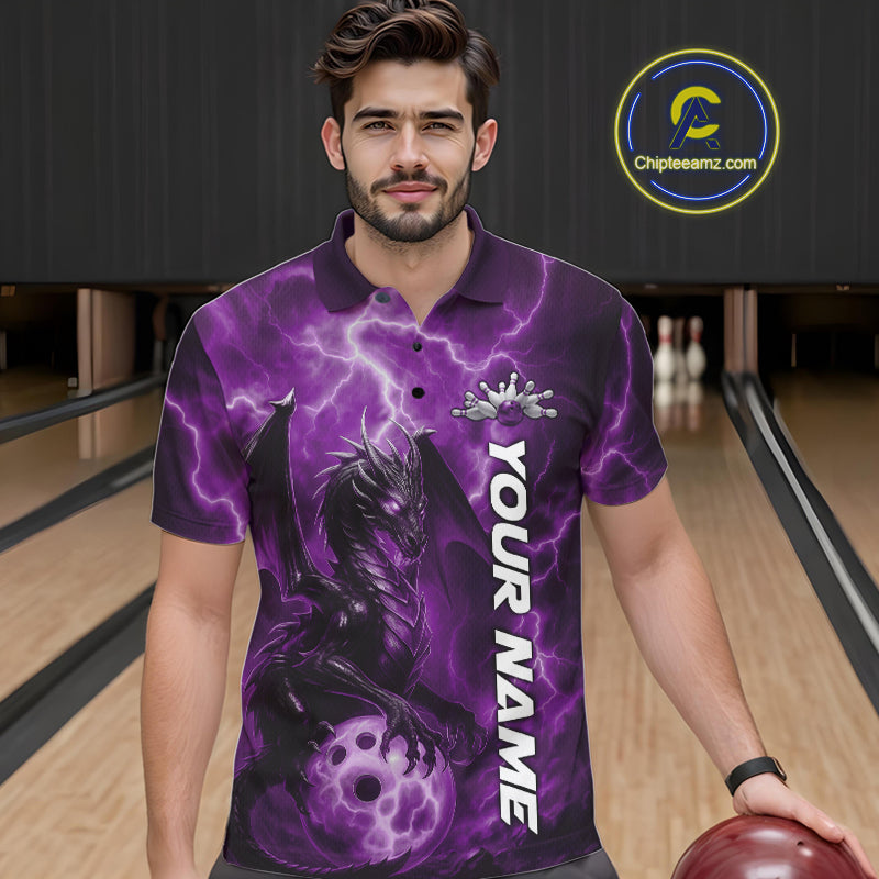 Custom Purple Thunder Lightning Bowling Team Men Polo Shirt, Dragon Bowling Jerseys IPHW10197