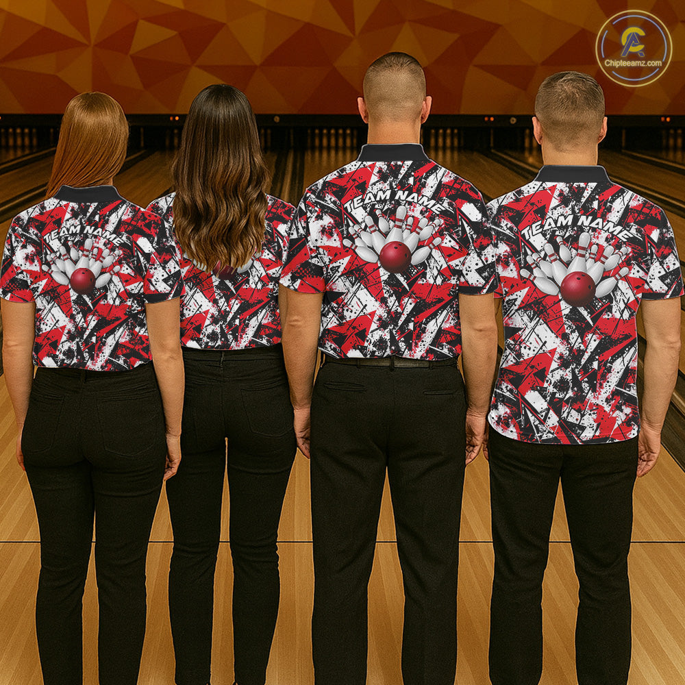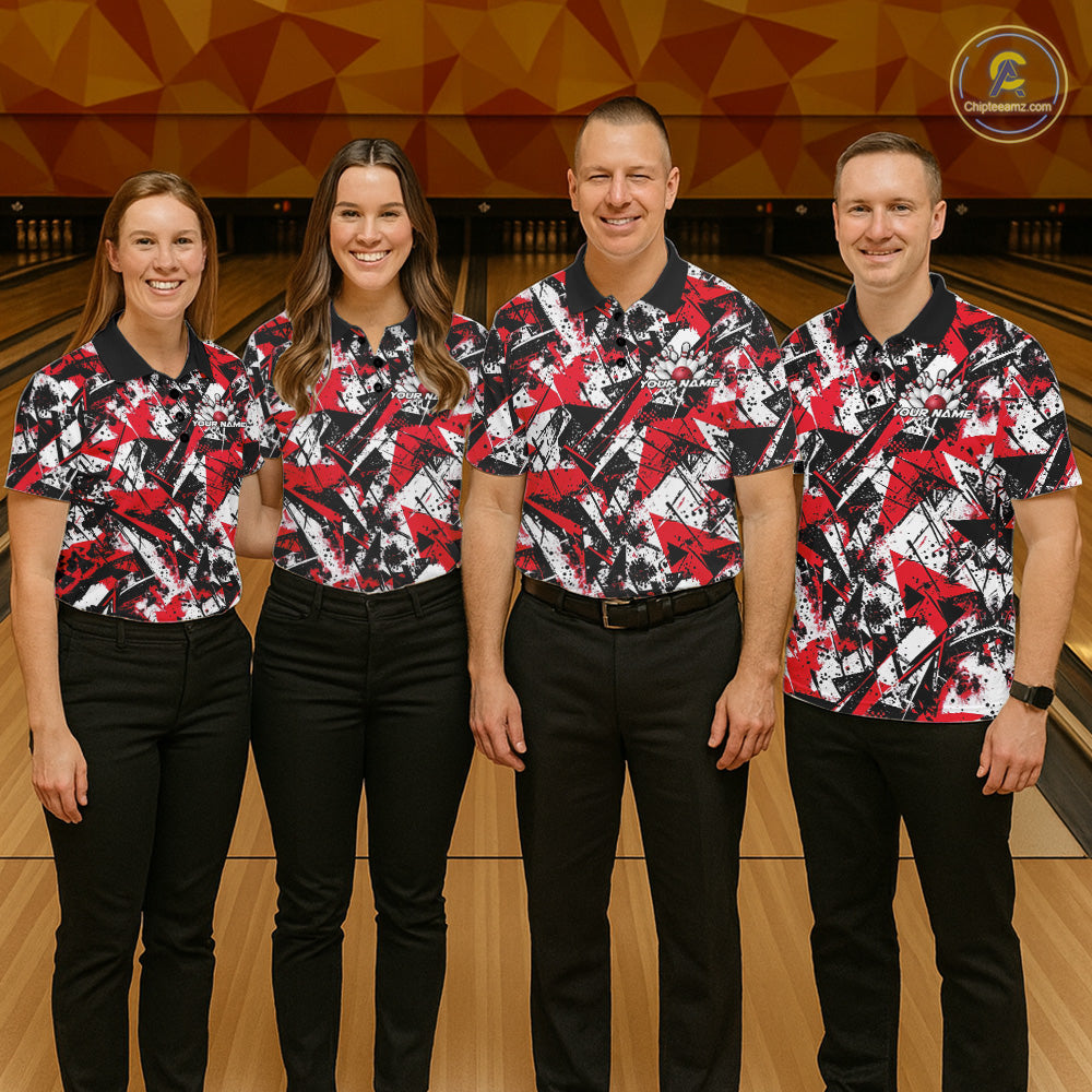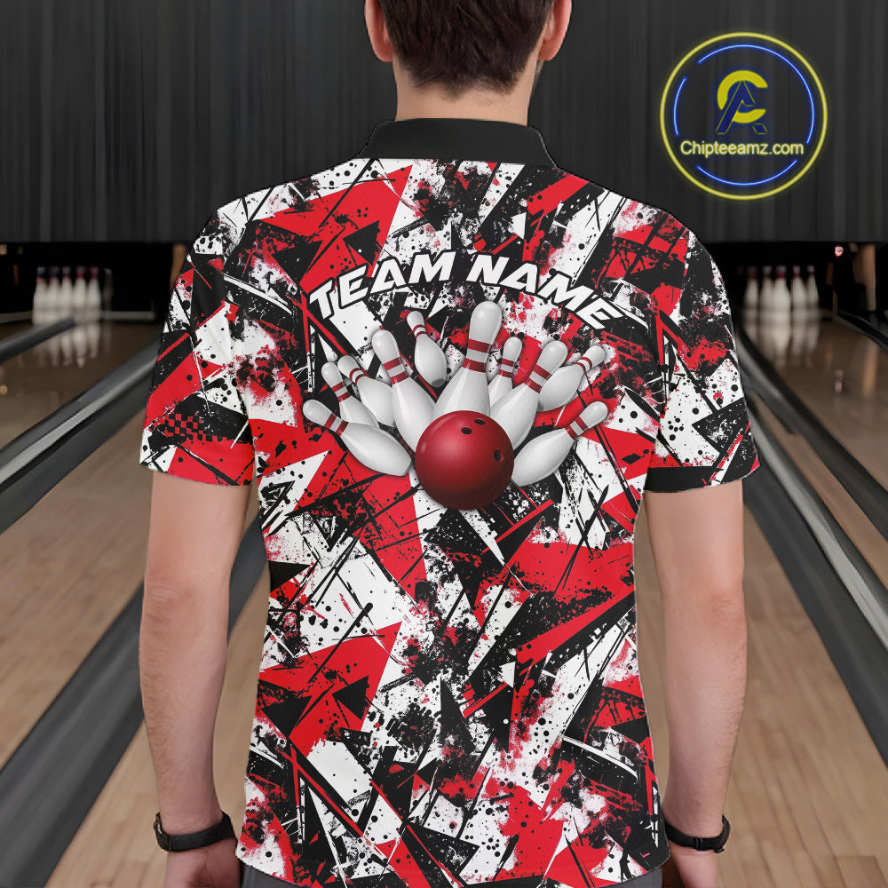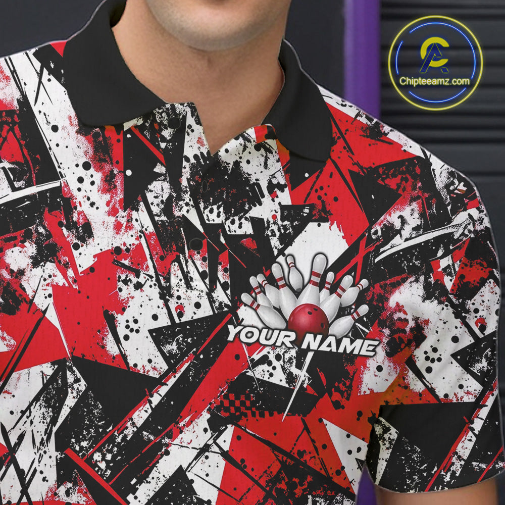 Custom Graffity Red Camo Bowling Team Men Polo Shirts, Camouflage Bowling Jerseys IPHW10218