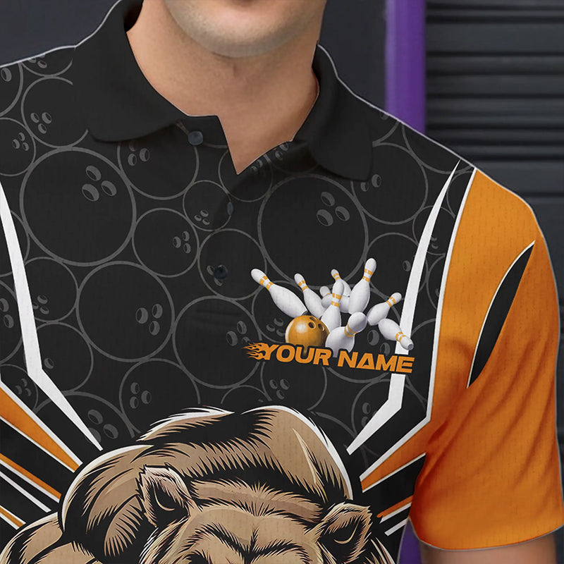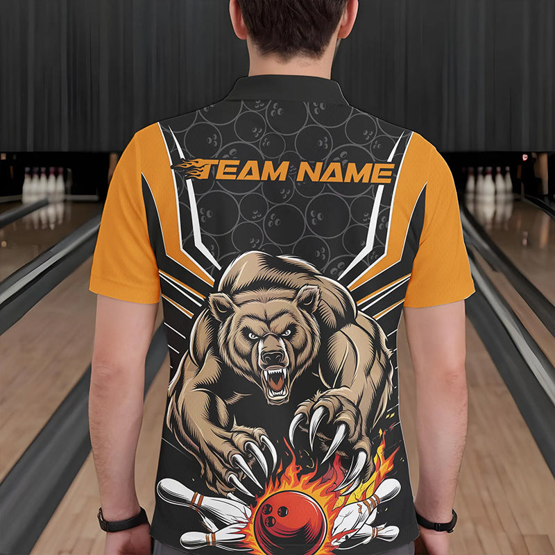 Black And Yellow Custom Bear Bowling Jerseys, Bear Bowling Team Polo Shirts For Men IPHW8831