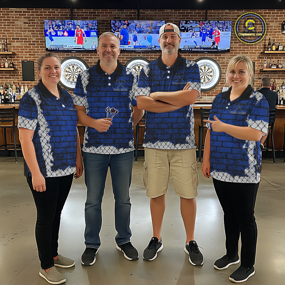 Blue Brick-Wall Fierce Bulldog Women Darts Polo Team Shirt Personalized Name For Players NYN2116